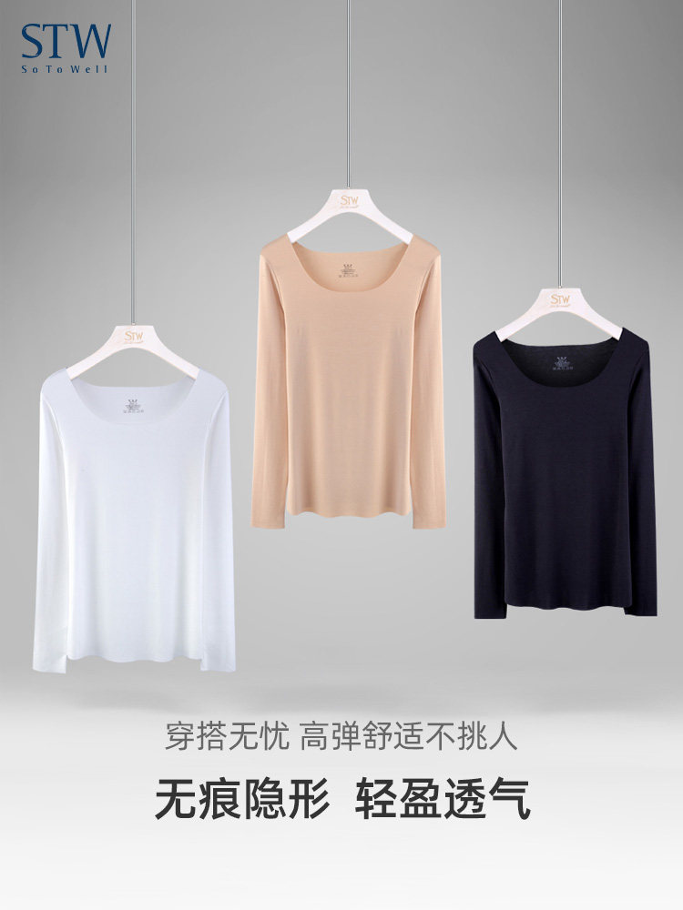 Stwsotowell, женская базовая одежда из модала, бесшовная облегающая одежда с круглым вырезом, мышечная базовая ткань, цвет кожи, внутренняя осенняя одежда