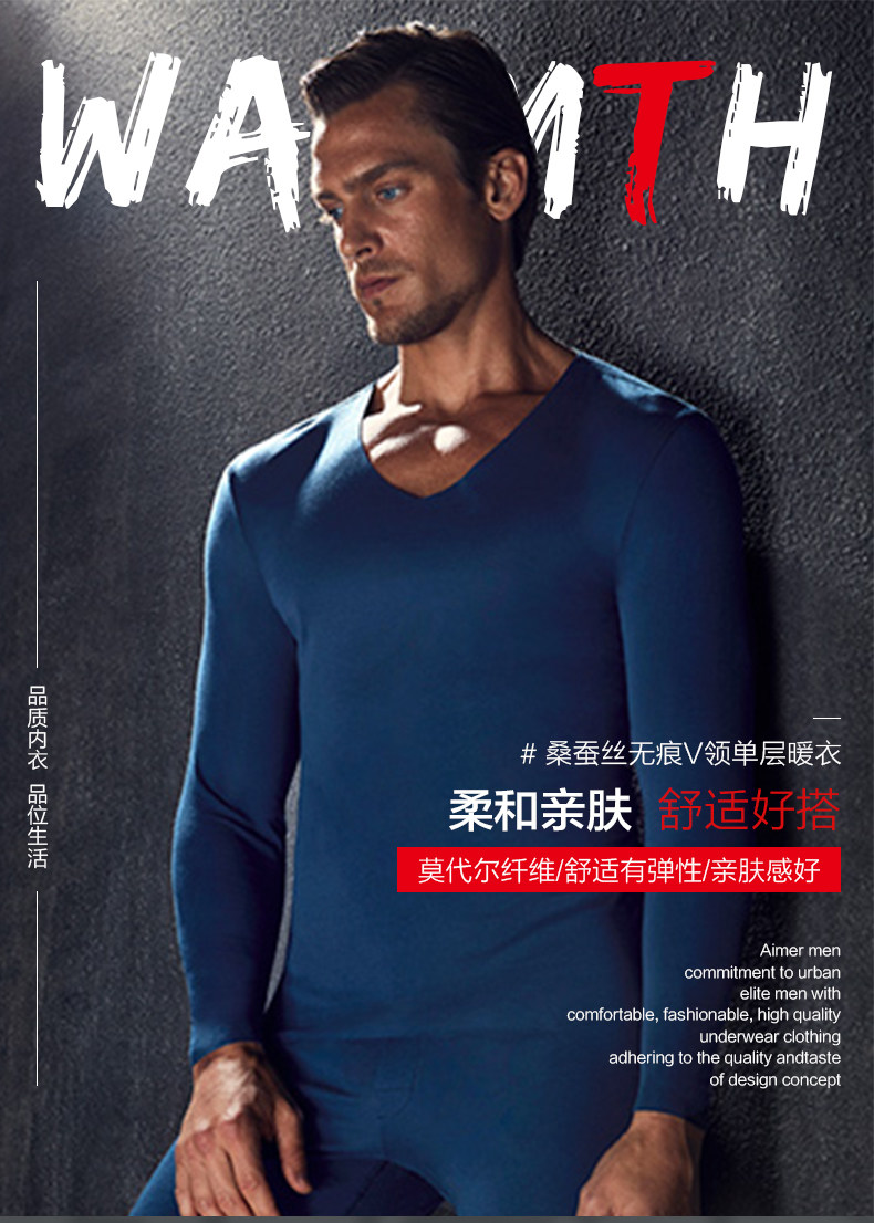 Мужское удерживающее тепло нижнее белье, шелковое трикотажное термобелье, V-образный вырез, 72W