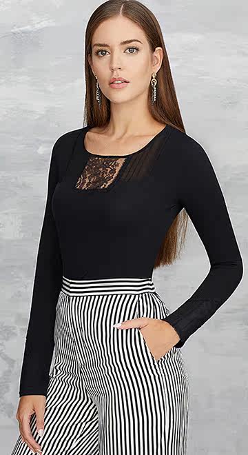 | 1. Женская круглая шея с длинной базовой вершиной, удобной и легкой; 2. Круглый тип воротника, складной строчки, изысканный и красивый; 3. Длинные рукава, сшивая кружевное кружево, детали подчеркивают качество. |