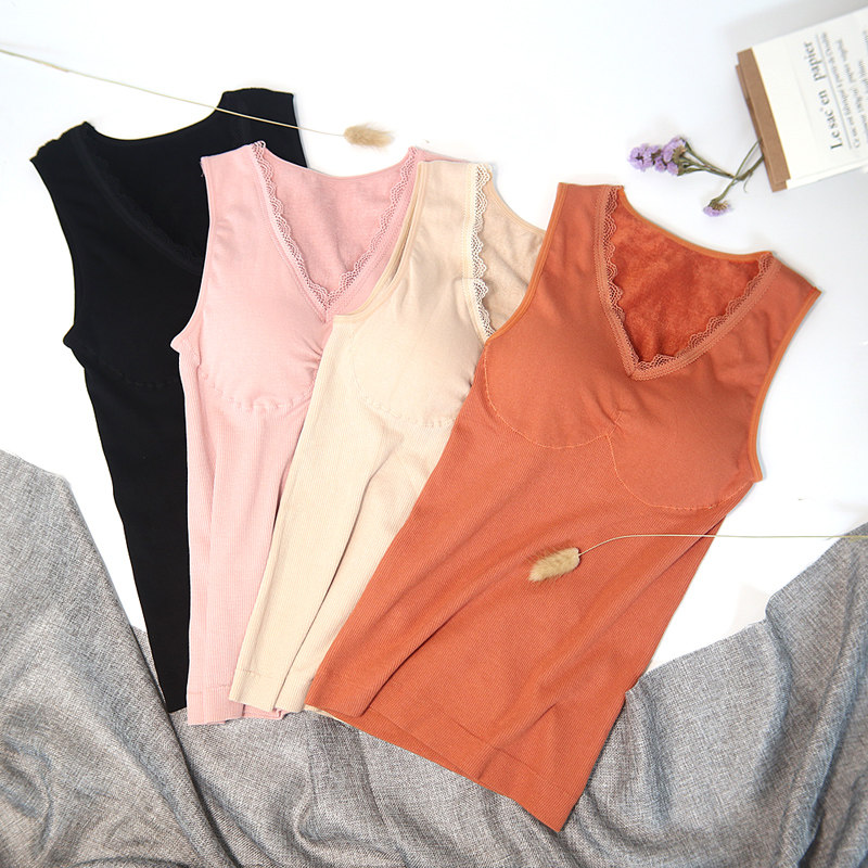 花耐 Демисезонный топ с чашечками, удерживающая тепло кружевная майка топ, бархатное полотенце, удерживающее тепло нижнее белье, V-образный вырез