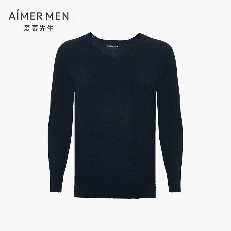 Мистер Ай Мужский теплый мужчина 20Aw Milk Casual v -neck с длинными рукавами осень тонкий топ NS72D481