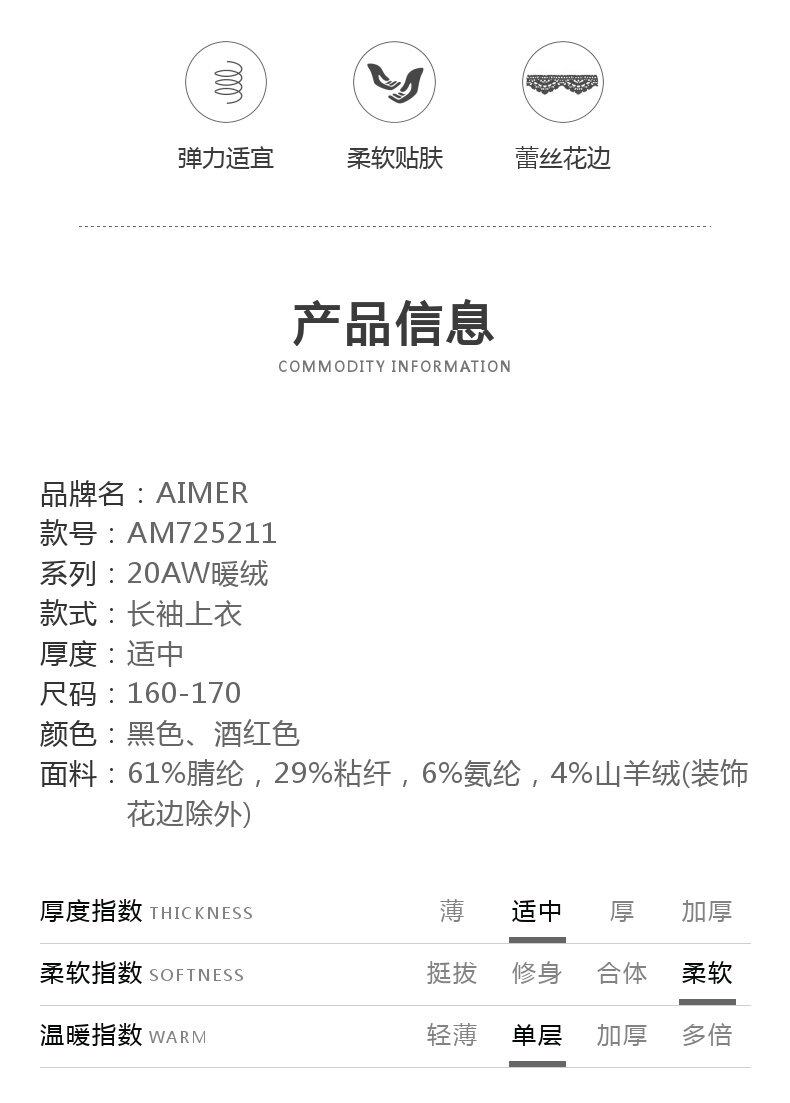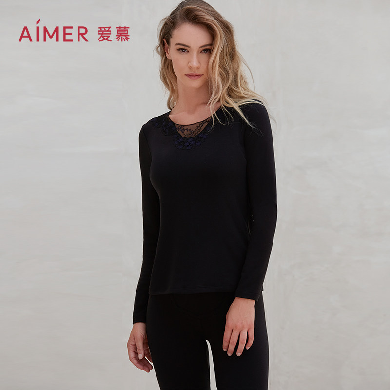 爱慕 Красное удерживающее тепло нижнее белье, бархатный базовый лонгслив с круглым воротником