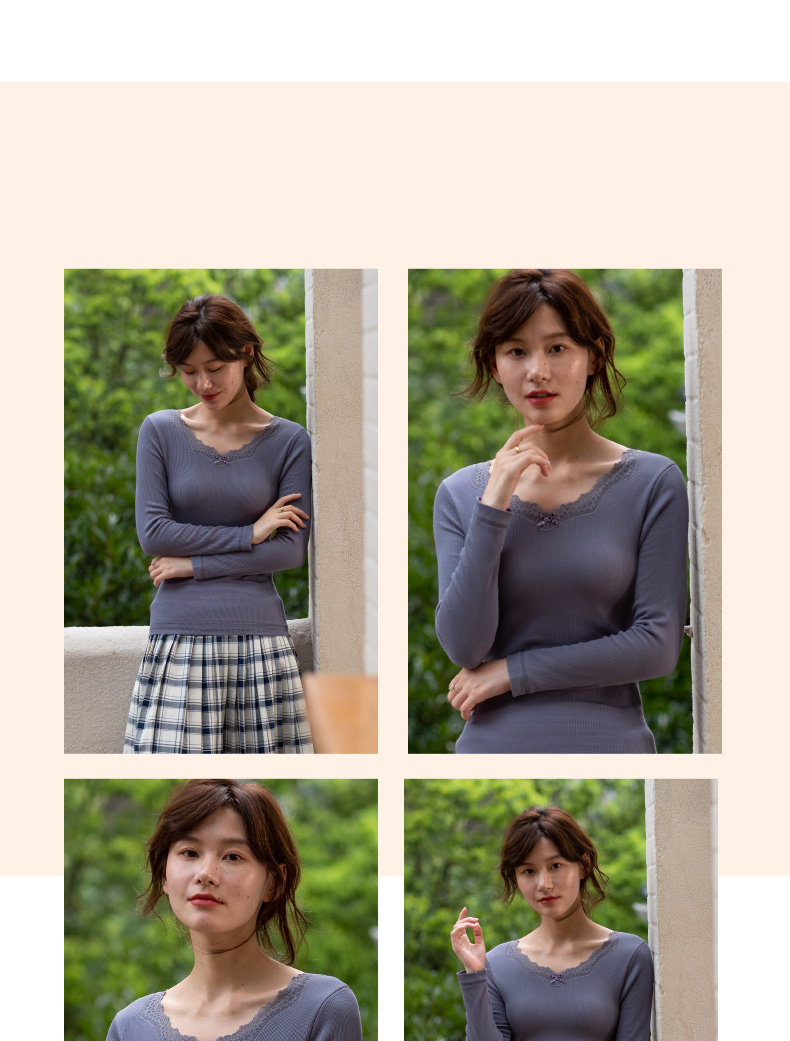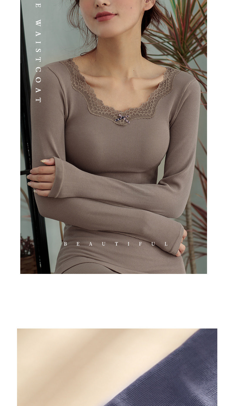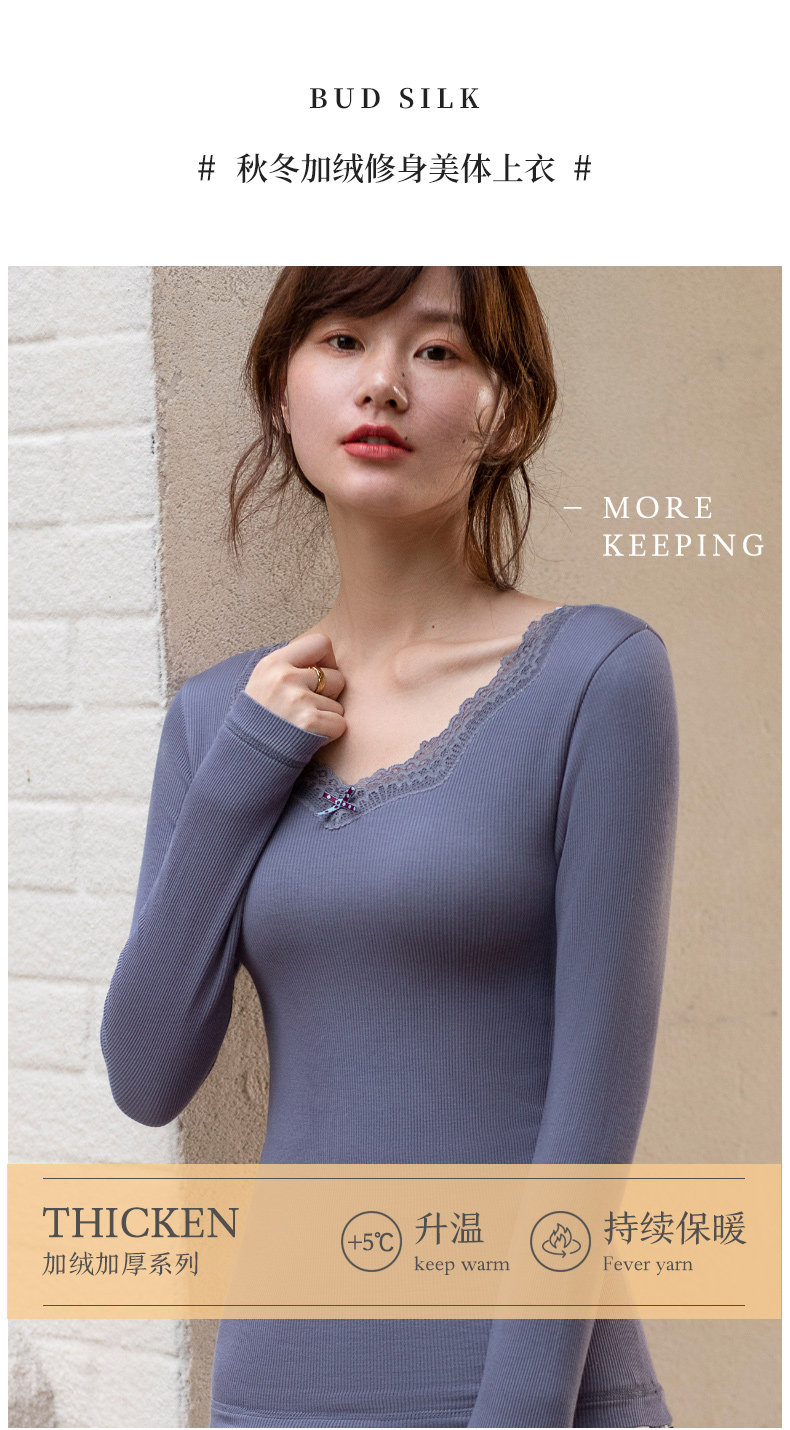 Утепленное кружевное демисезонное базовое приятное телу нижнее белье, V-образный вырез, облегающий крой