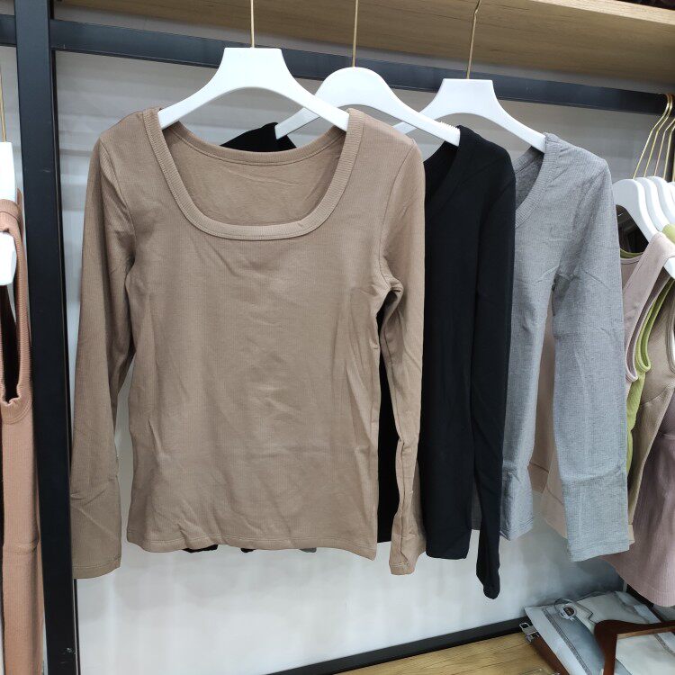 黛美芮 Демисезонная удерживающая тепло базовая приятная телу футболка, лонгслив, квадратный вырез, облегающий крой