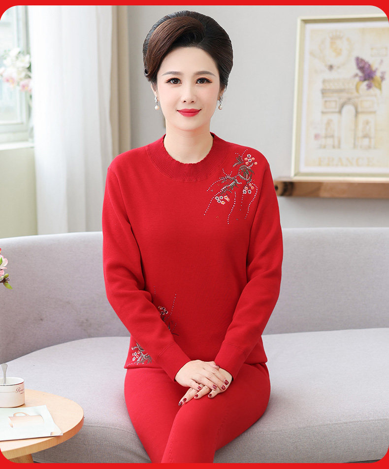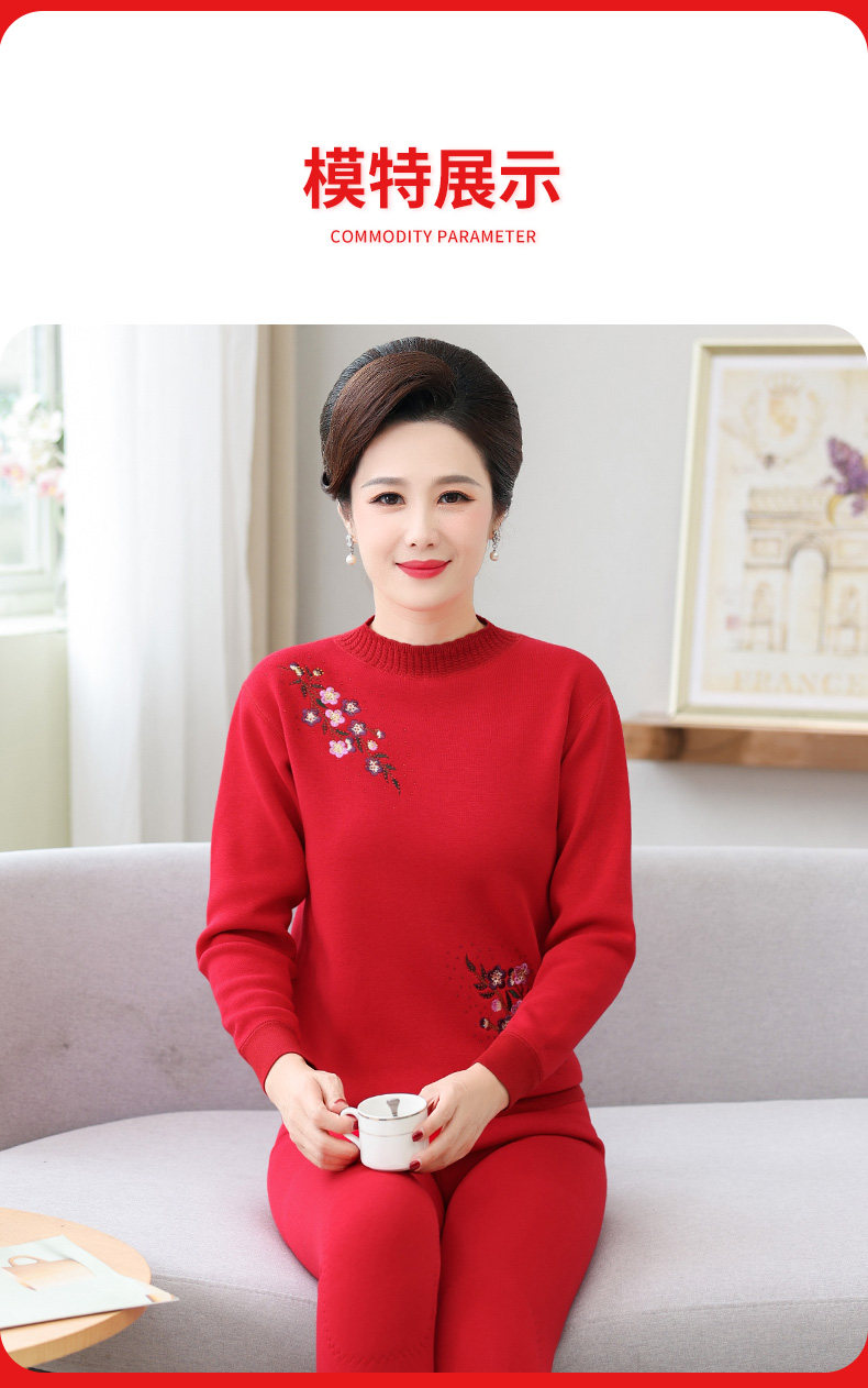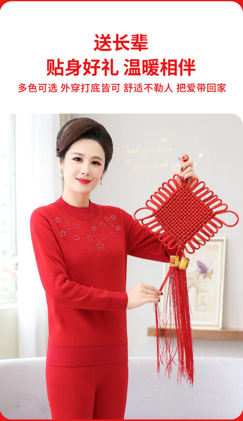 Удерживающее тепло утепленное нижнее белье для пожилых людей, оберег на день рождения для матери, удерживающий тепло красный зимний комплект, для среднего возраста