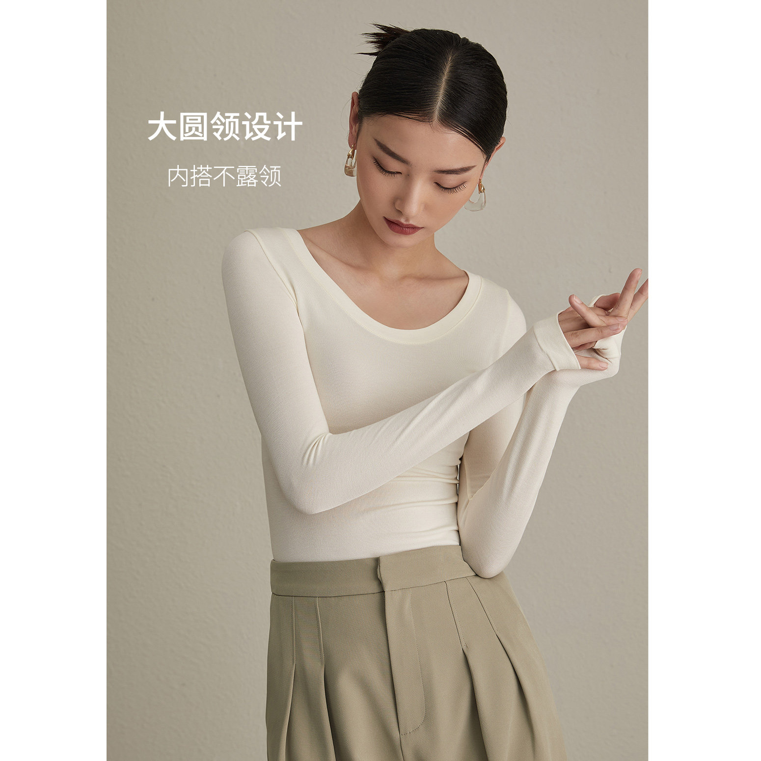 TINGE Кашемировое удерживающее тепло демисезонное нижнее белье с круглым воротником, утепленный лонгслив, термобелье