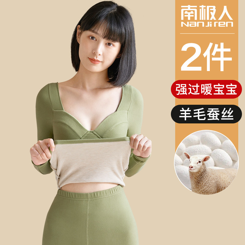 南极人 Удерживающий тепло топ с чашечками, утепленное нижнее белье, комплект, базовое приятное телу зимнее термобелье, высокий воротник