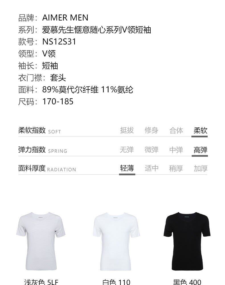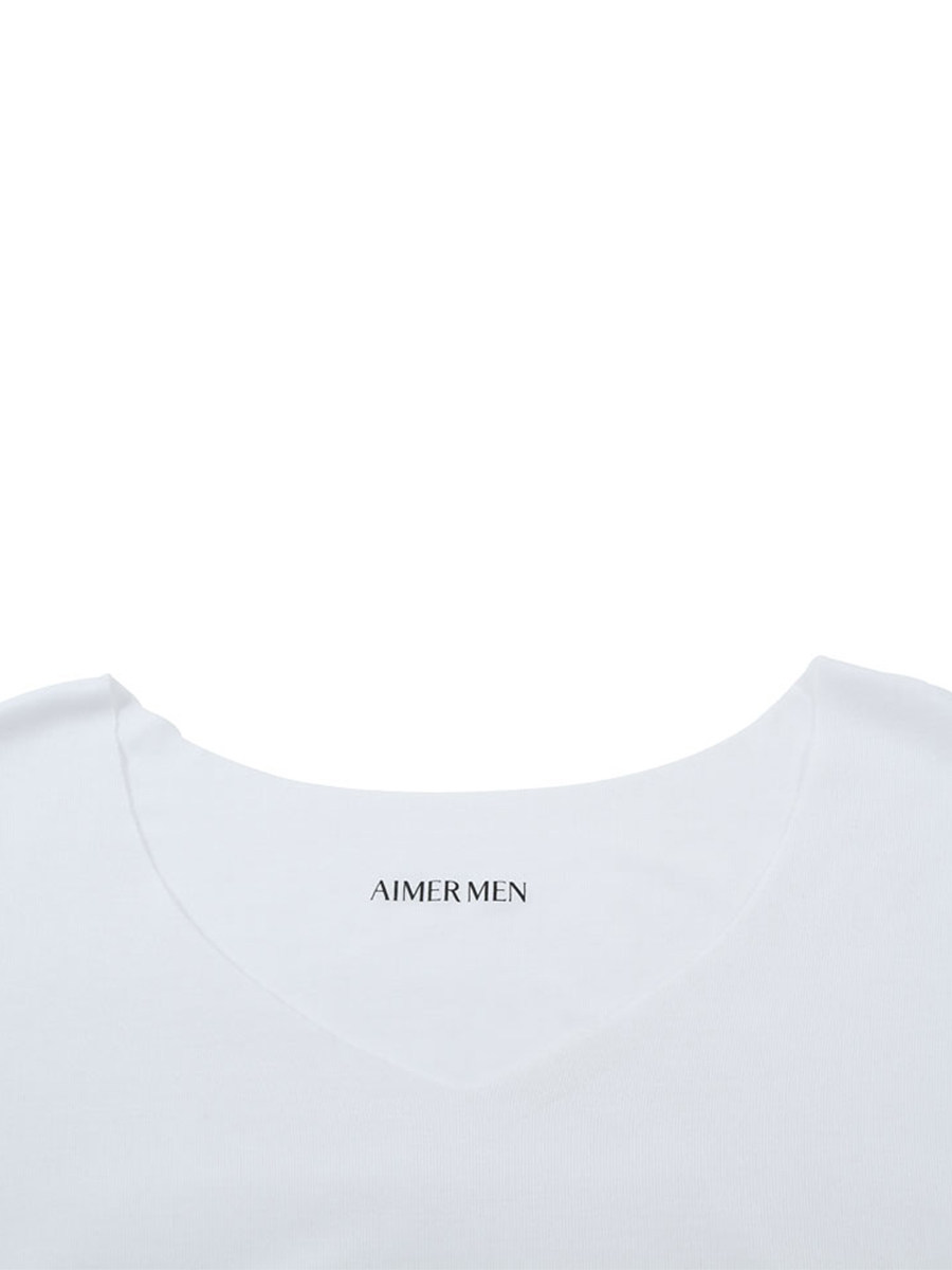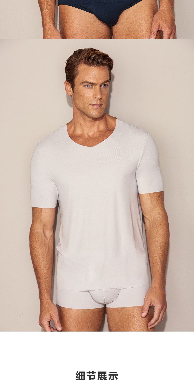 Г-н Айту мужской твердый цвет модальный осенний и зимний с коротким рукавом Vo-образный вырезок Top 12S31