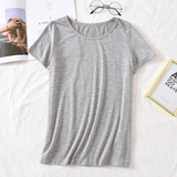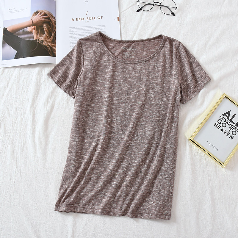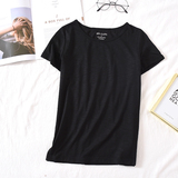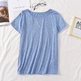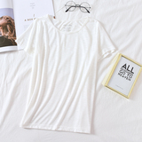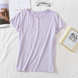 Бамбуковая хлопковая летняя однотонная базовая приятная телу футболка с коротким рукавом с круглым воротником, тонкая пижама, короткий рукав