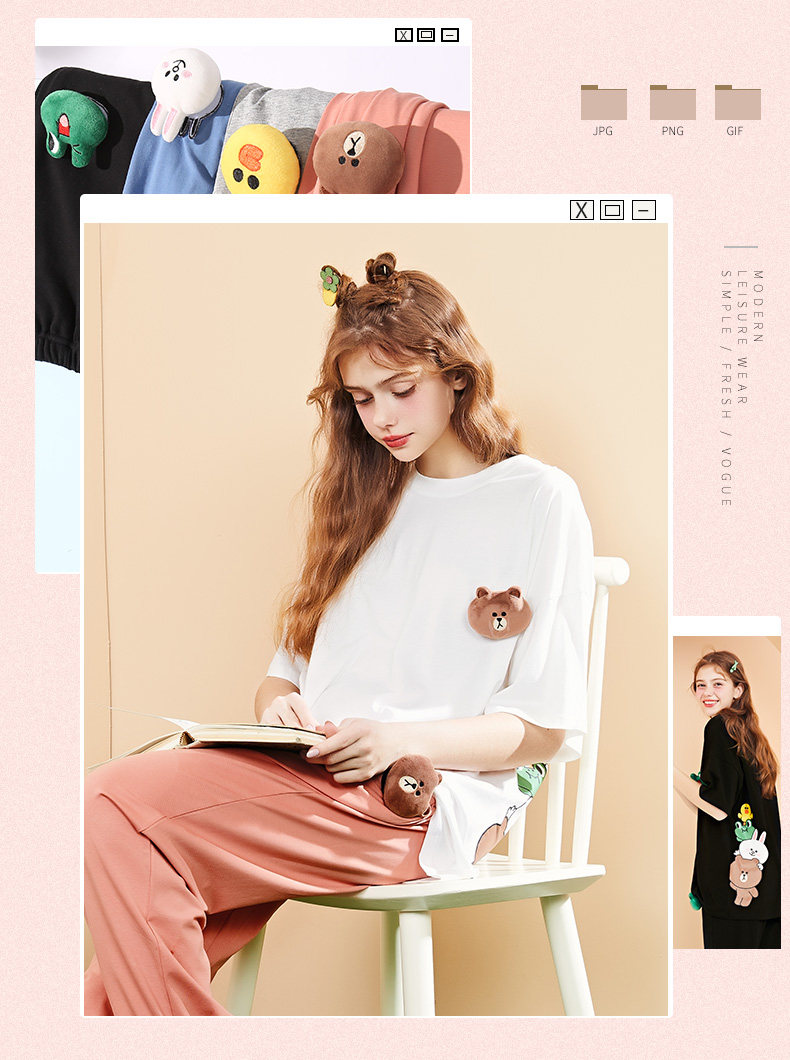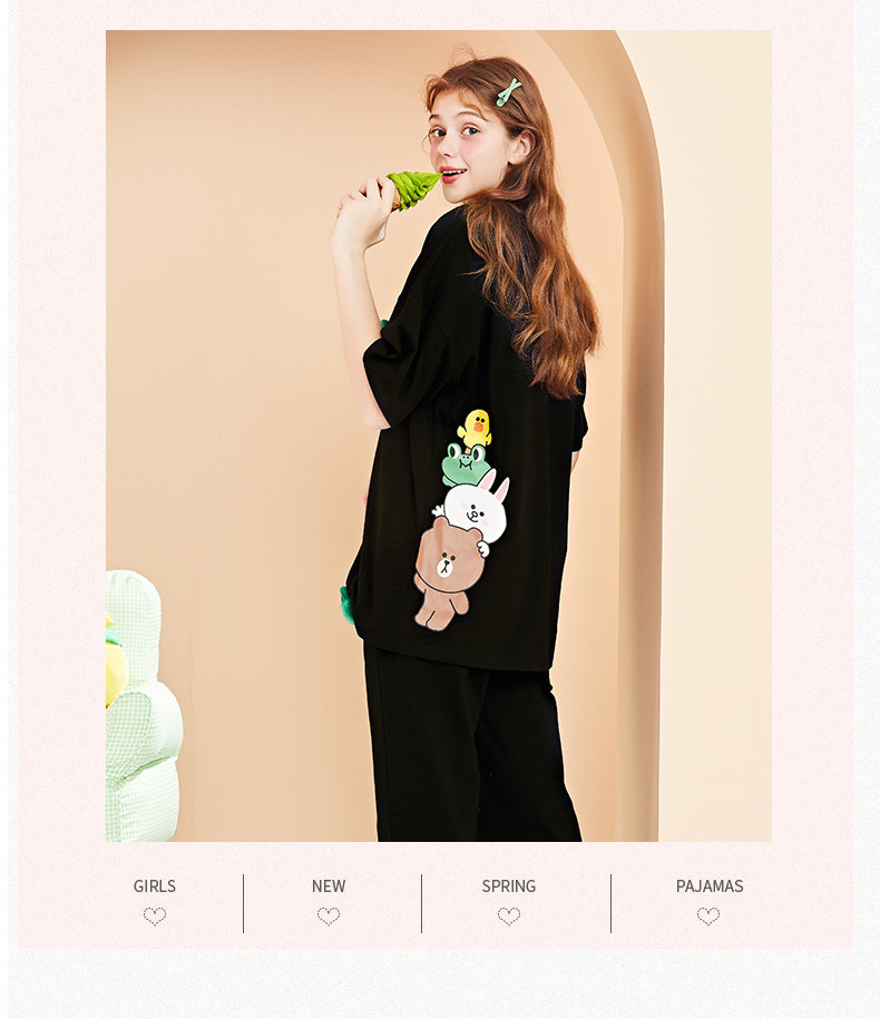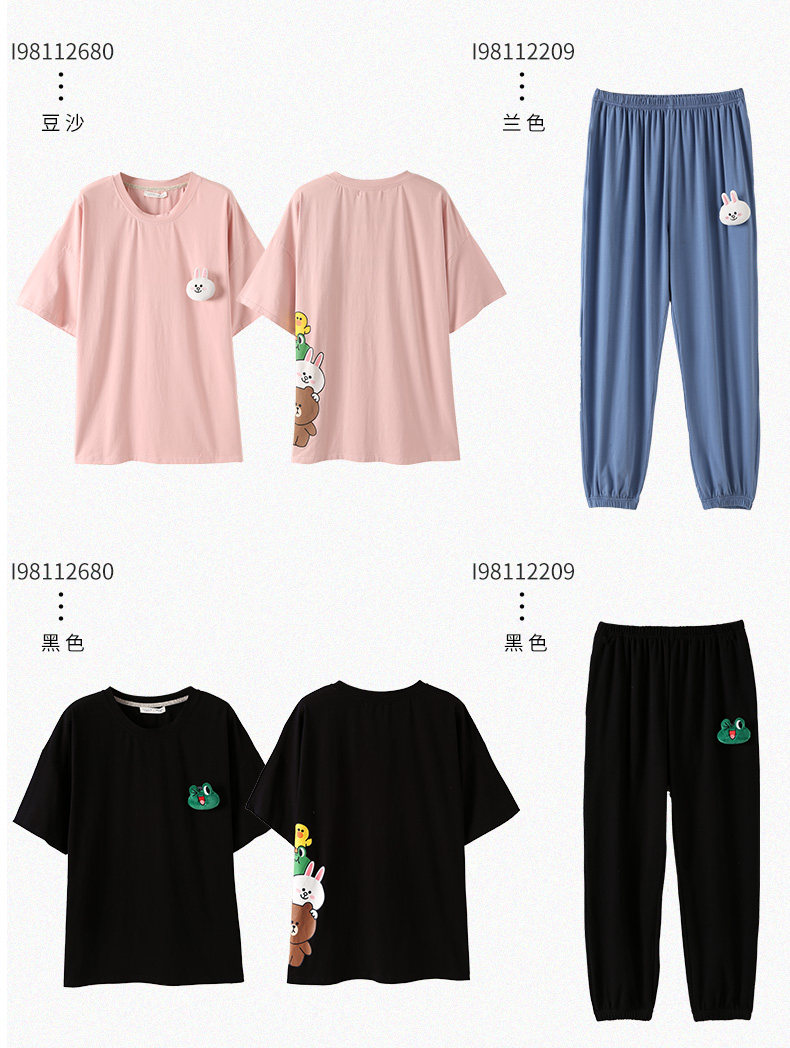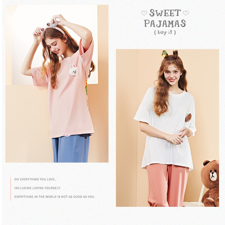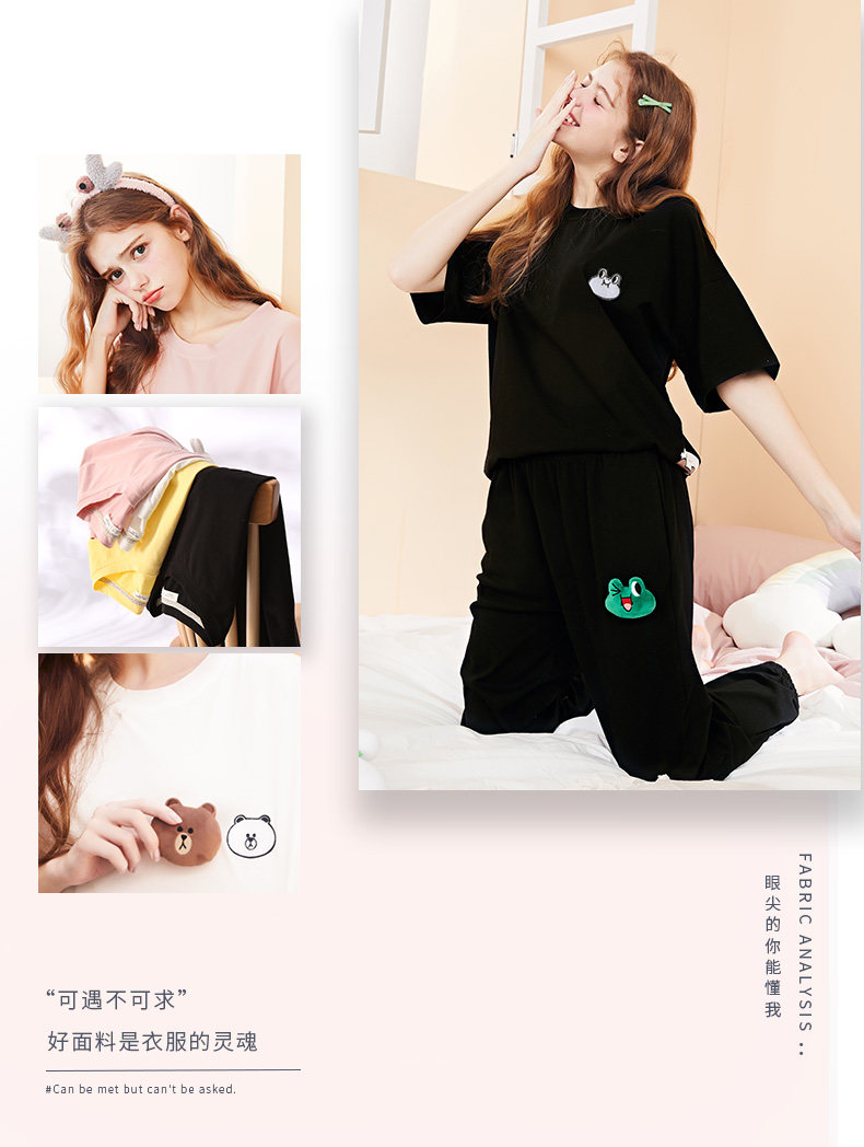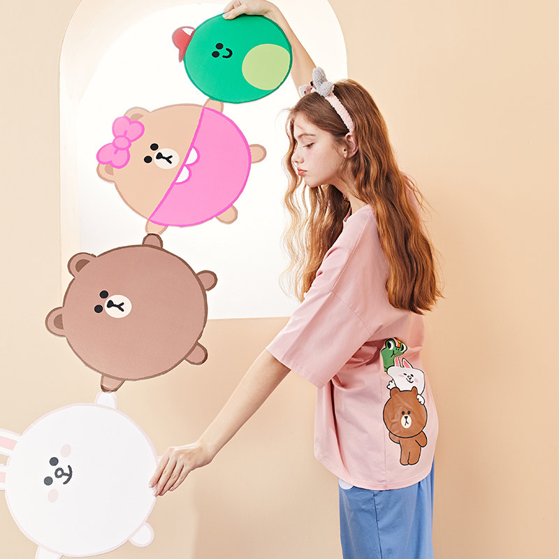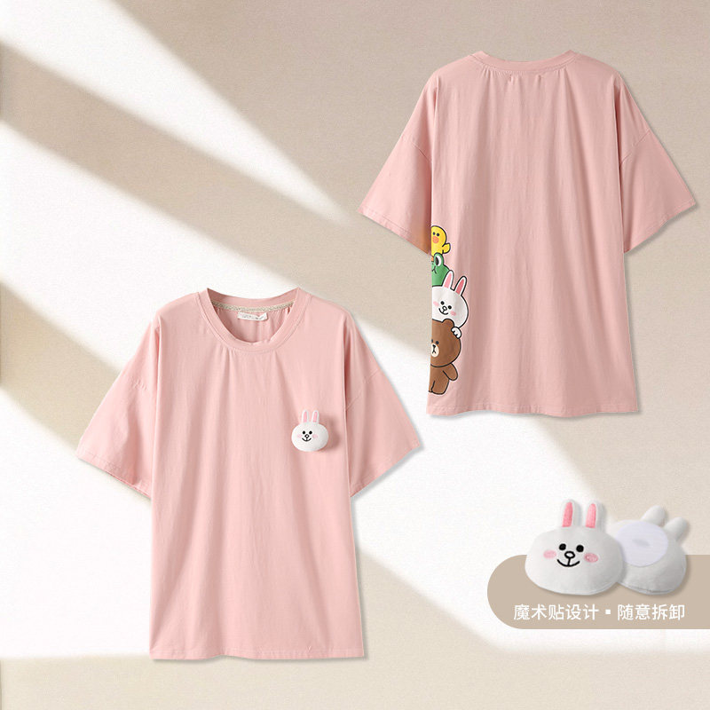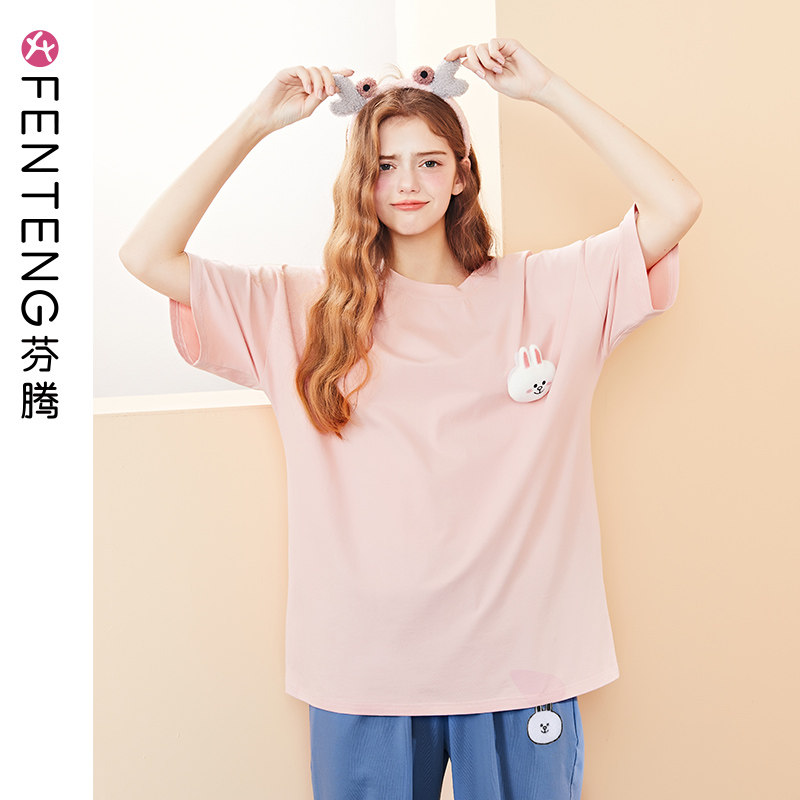 芬腾 Хлопковая тонкая пижама, футболка, короткий рукав, в корейском стиле