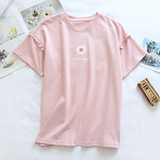 Пижама, хлопковая тонкая приятная телу футболка с коротким рукавом с круглым воротником