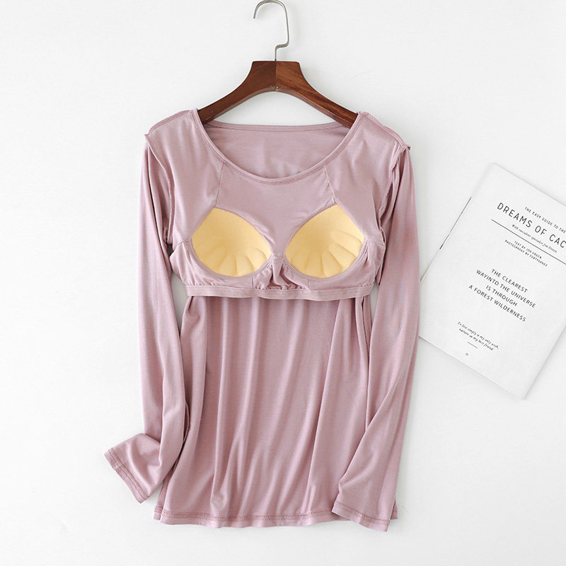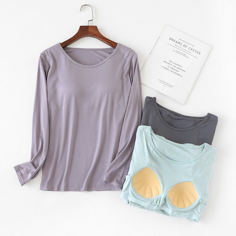 Топ с чашечками, осеннее термобелье, бюстгальтер-топ, пижама, лонгслив, приятная телу футболка, бюстгалтер