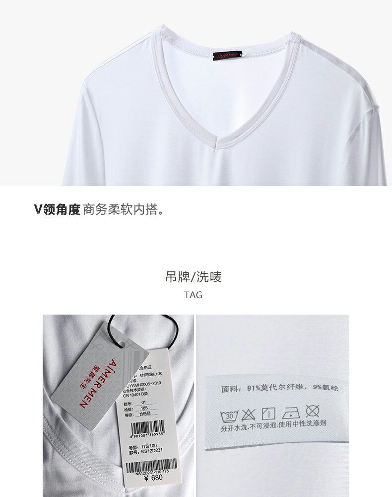 Мистер Ай, удобный и скинный, Modalne, нижний v -neck Men's T -Fish, два куска NS12D231