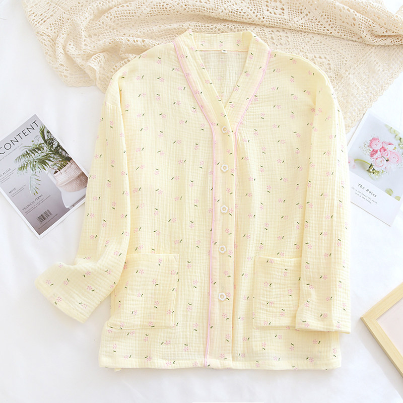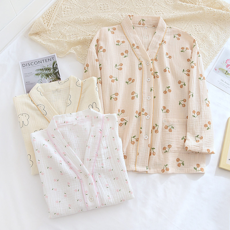Демисезонная хлопковая марлевая пижама, летний тонкий лонгслив