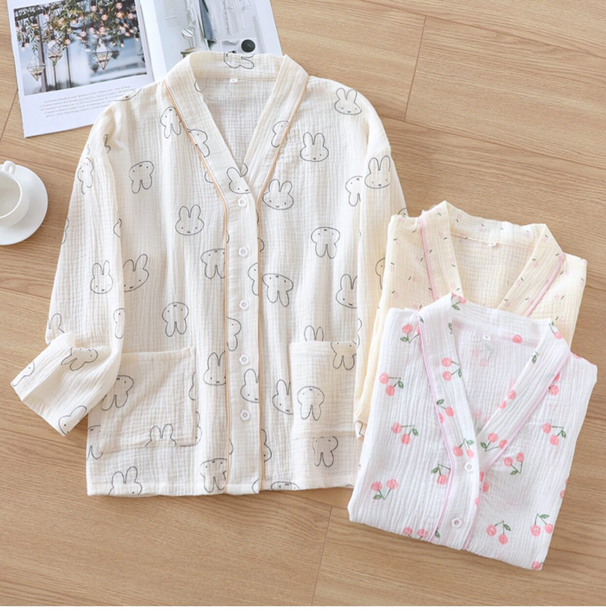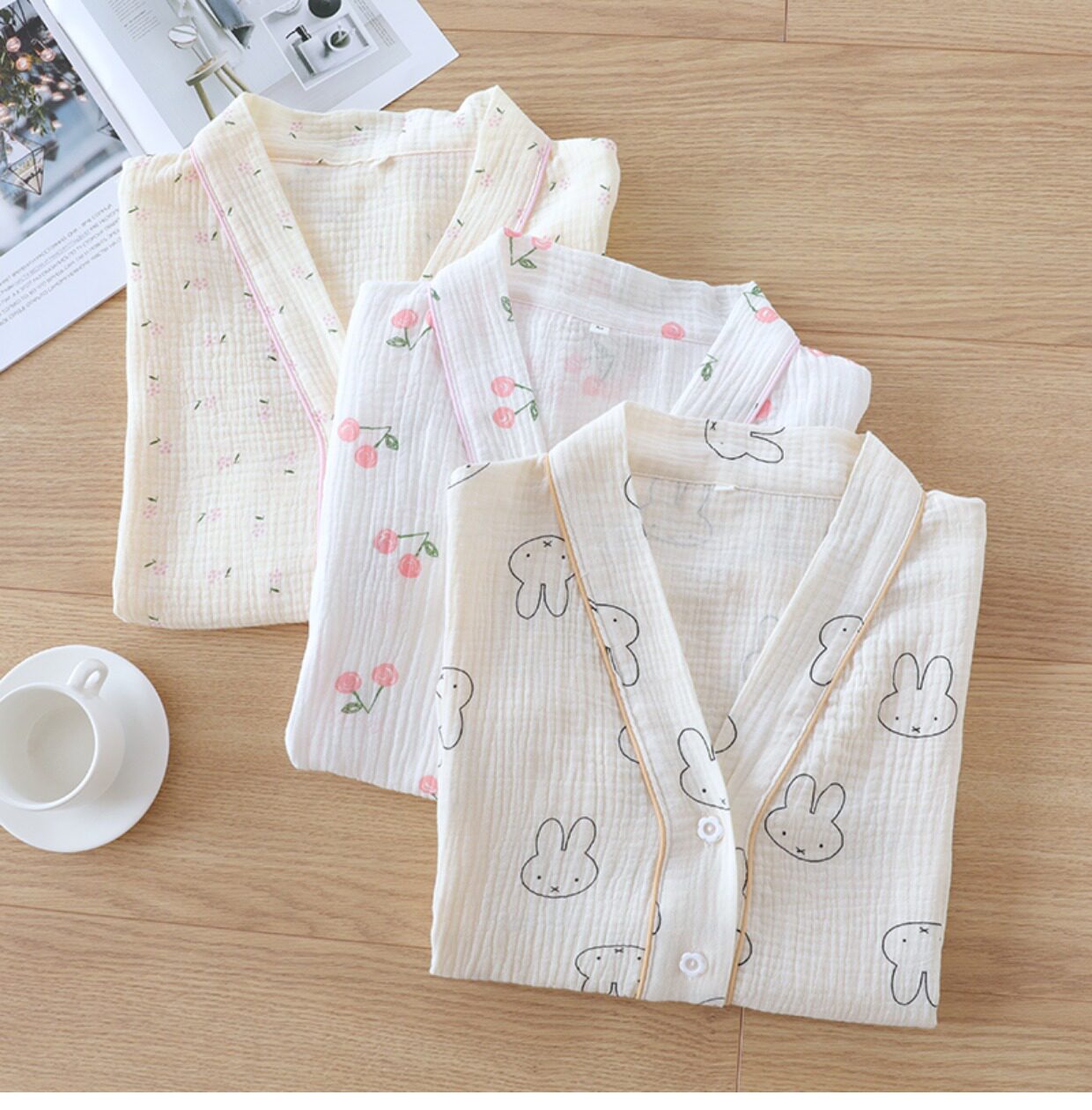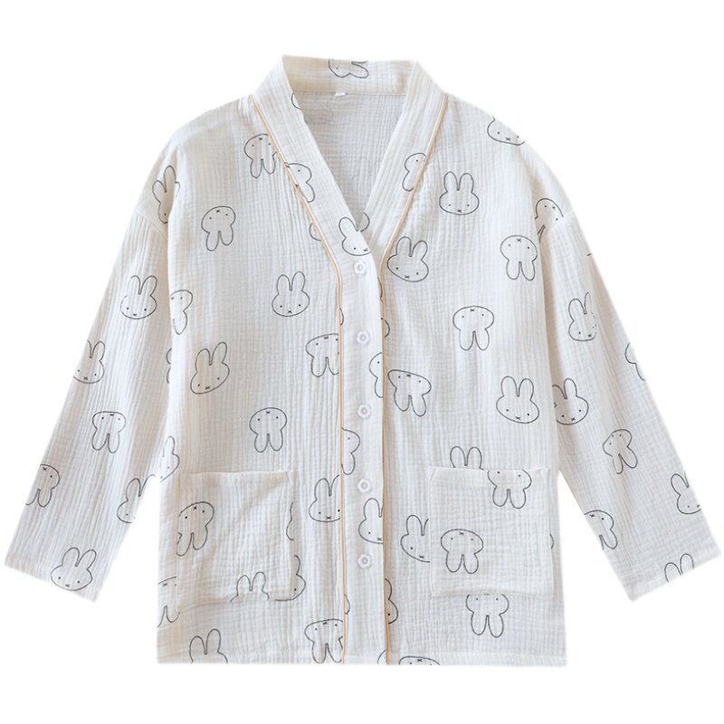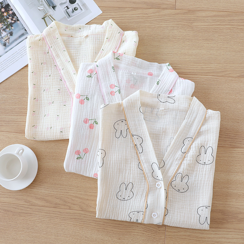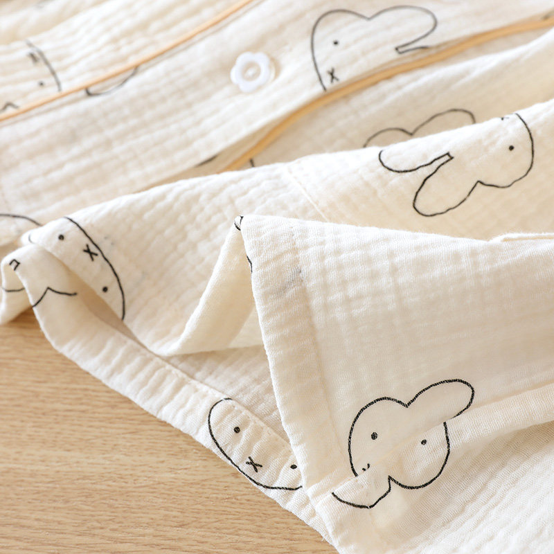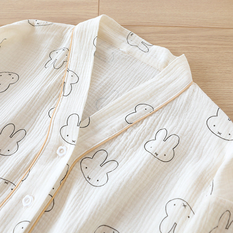 Хлопковая пижама, мультяшный тонкий марлевый летний лонгслив, V-образный вырез, свободный крой