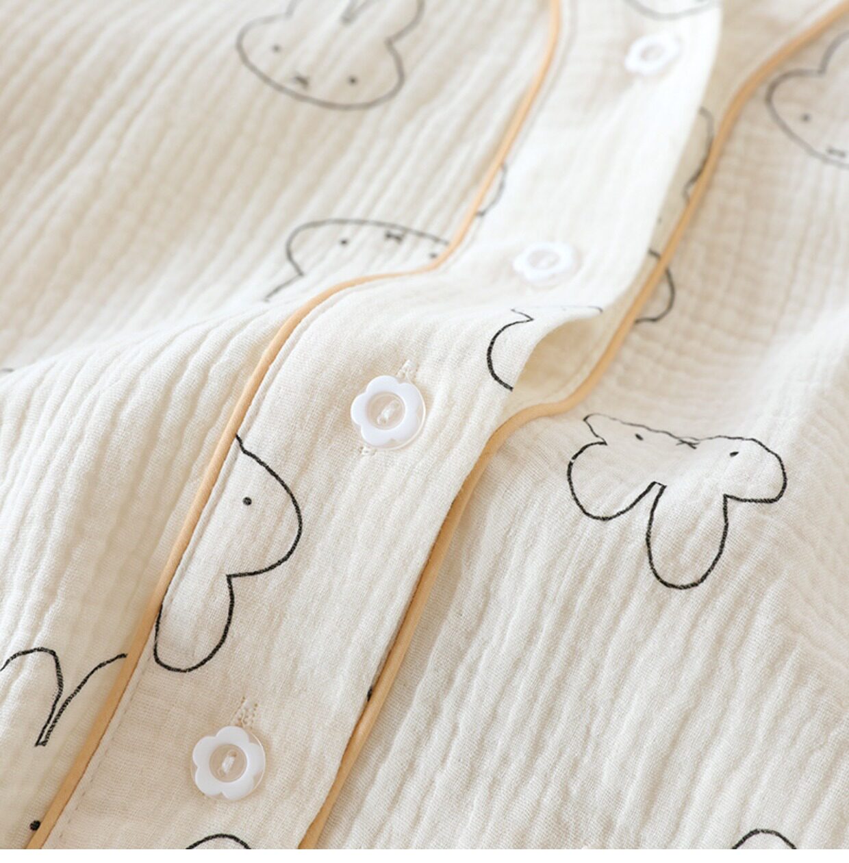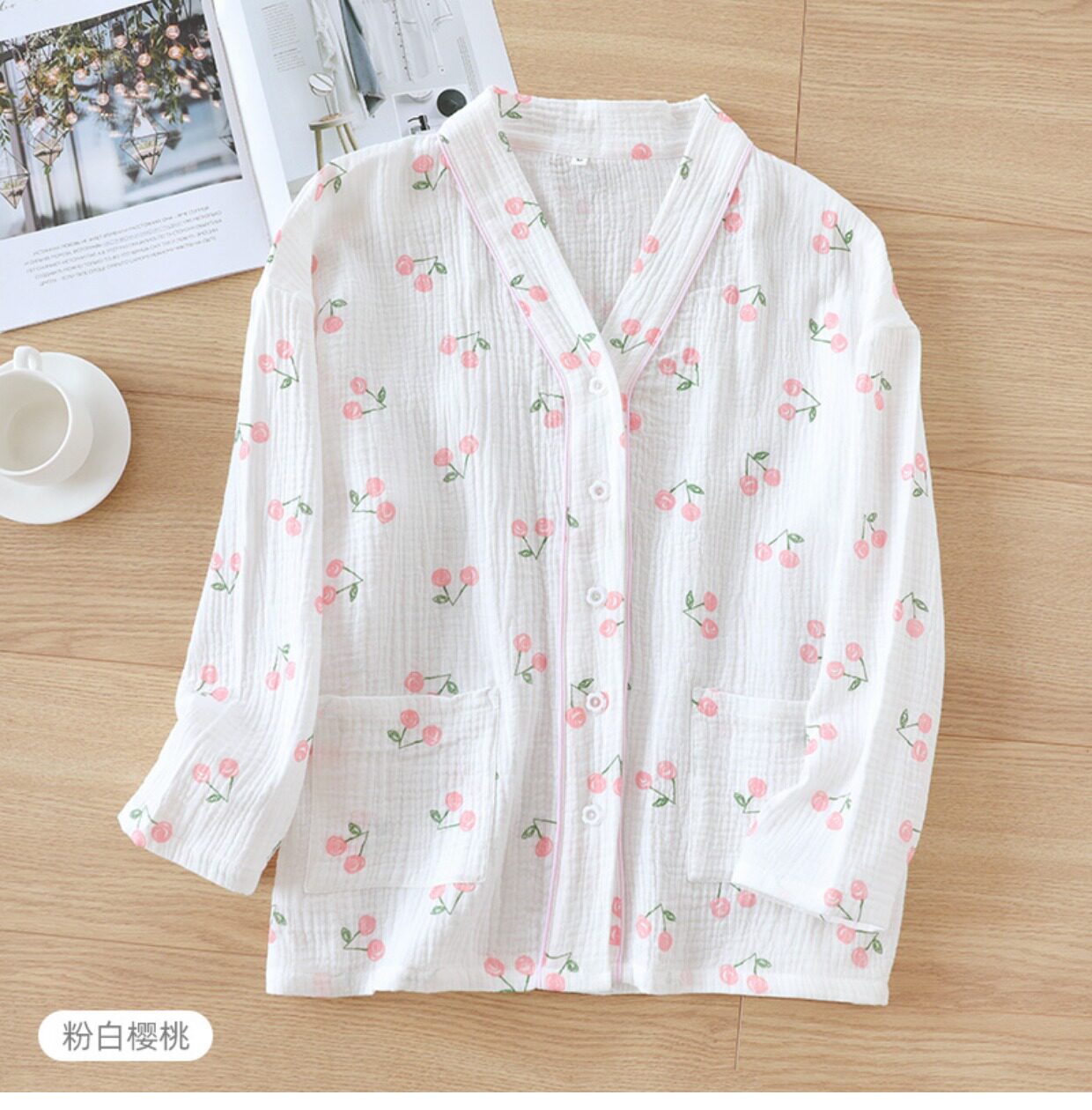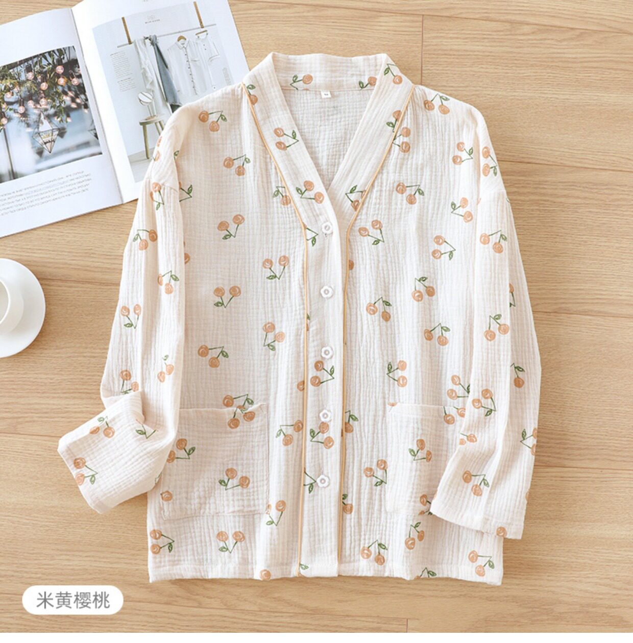 Хлопковая пижама, мультяшный тонкий марлевый летний лонгслив, V-образный вырез, свободный крой