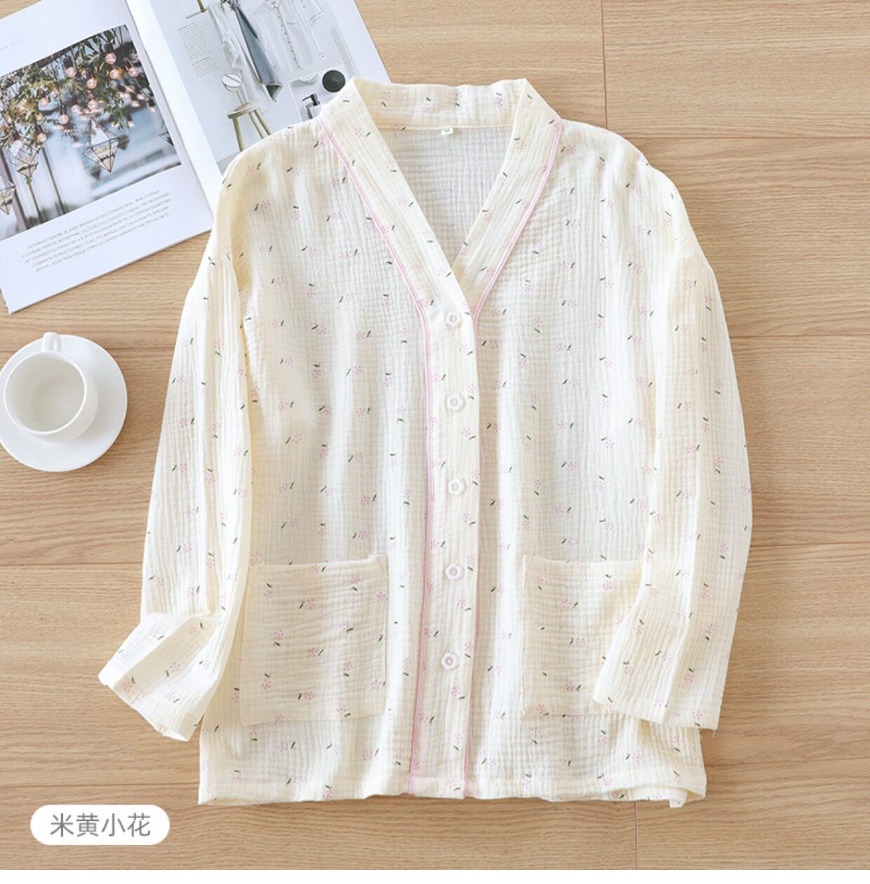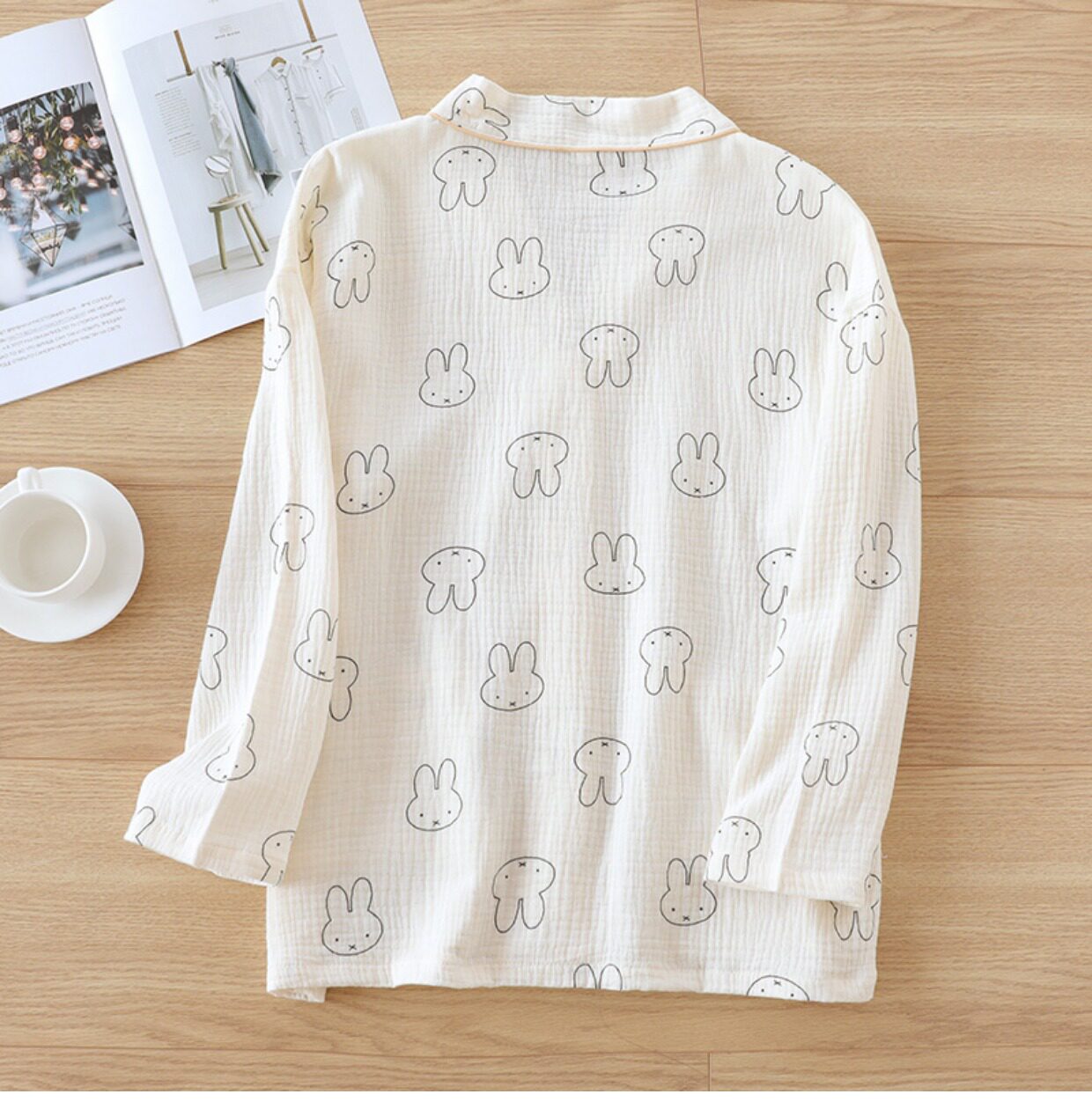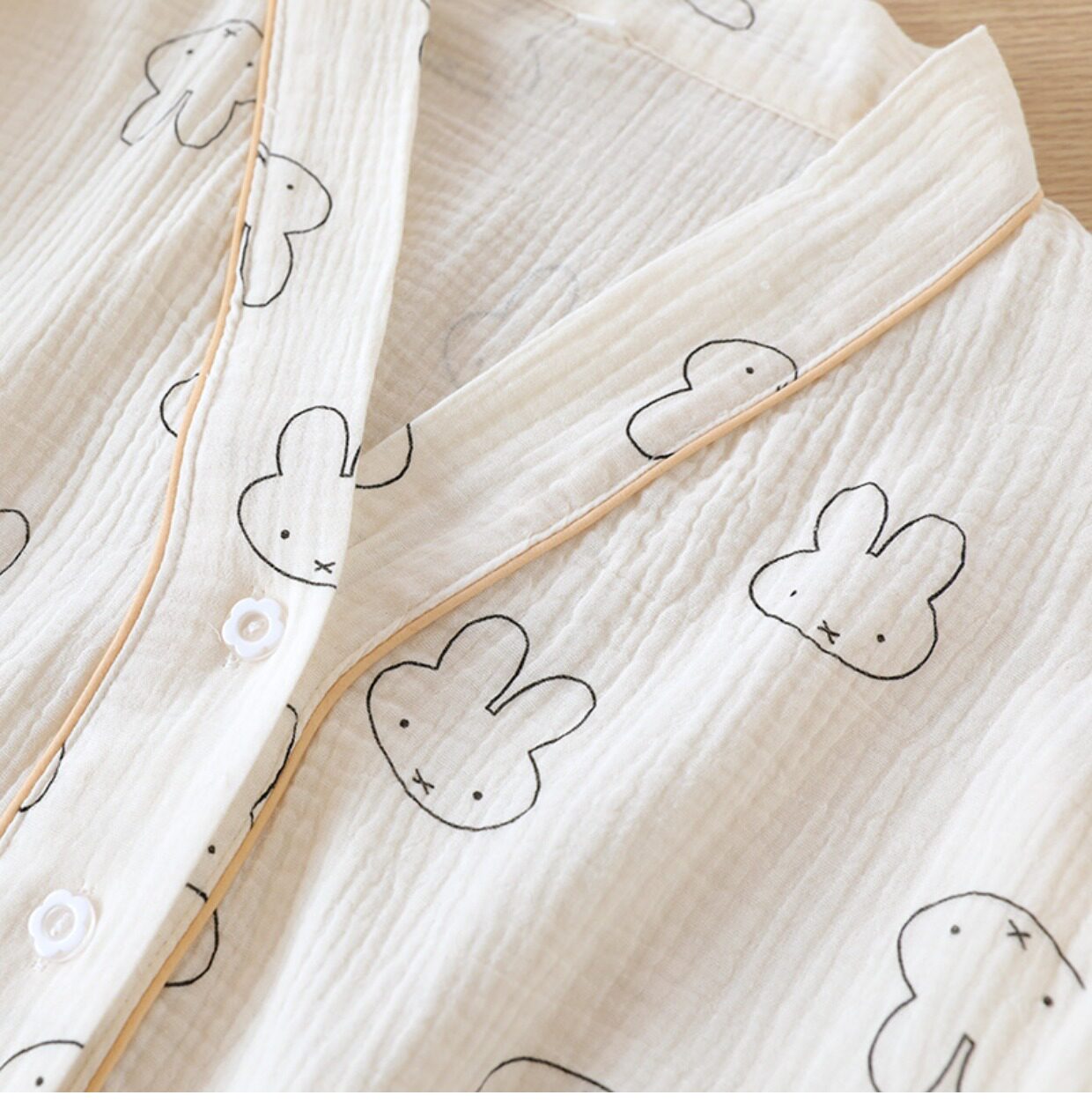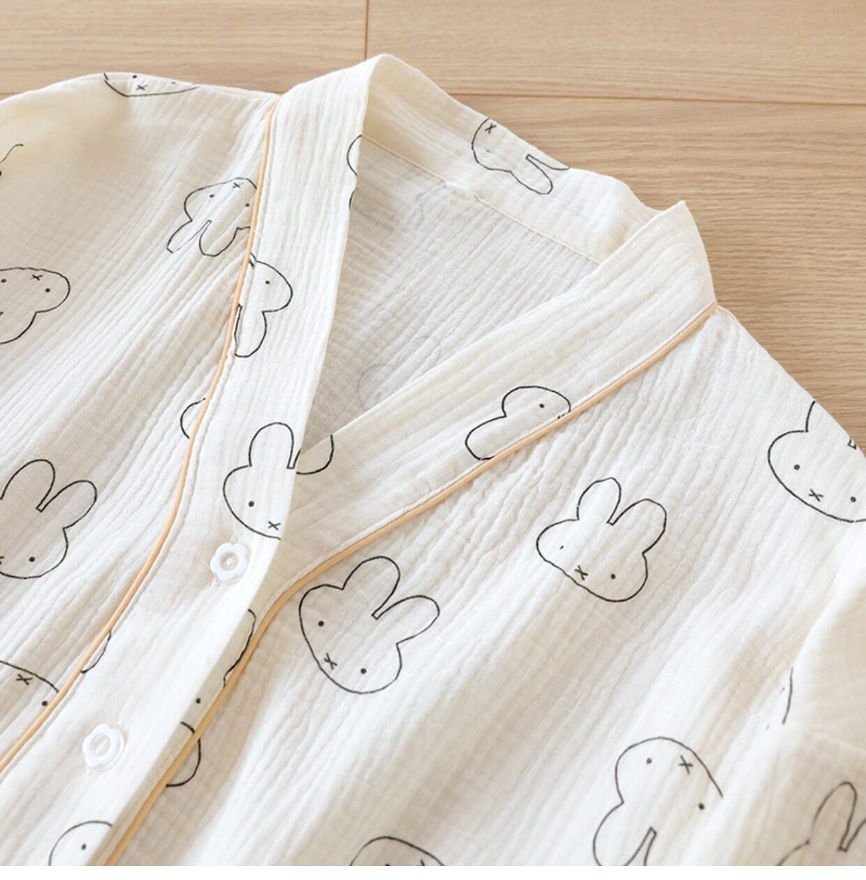 Хлопковая пижама, мультяшный тонкий марлевый летний лонгслив, V-образный вырез, свободный крой