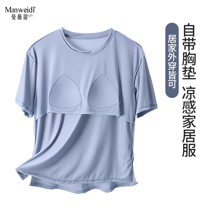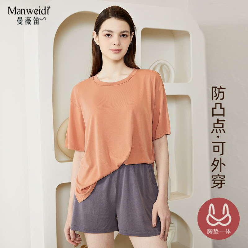 Топ с чашечками, футболка, пижама, комплект, летнее нижнее белье, большой размер