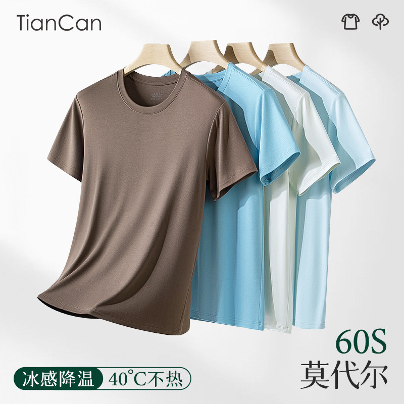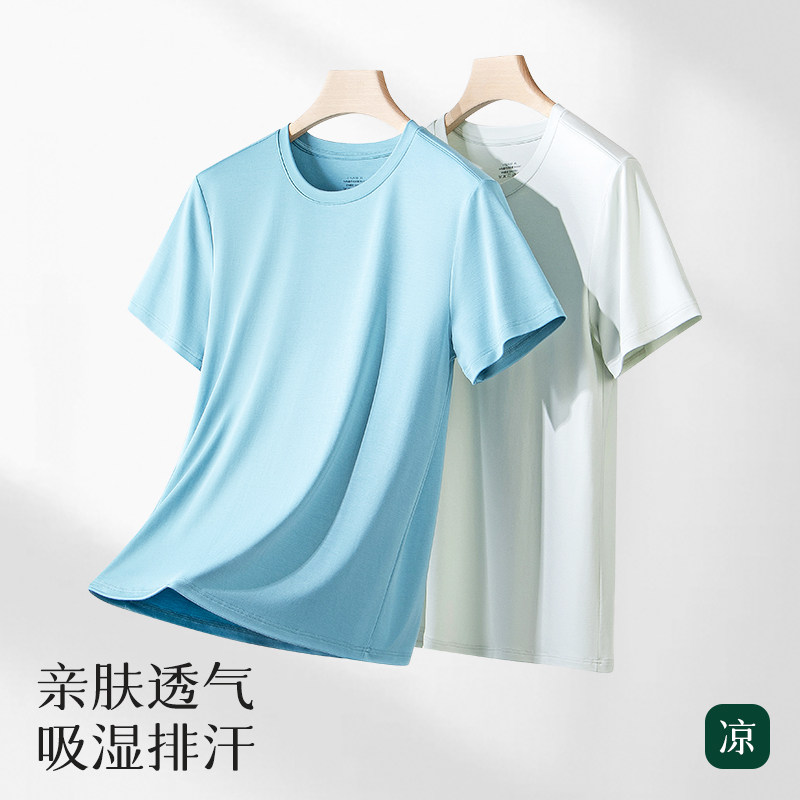 Мужская пижама, летняя тонкая шелковая футболка с коротким рукавом с круглым воротником, большой размер
