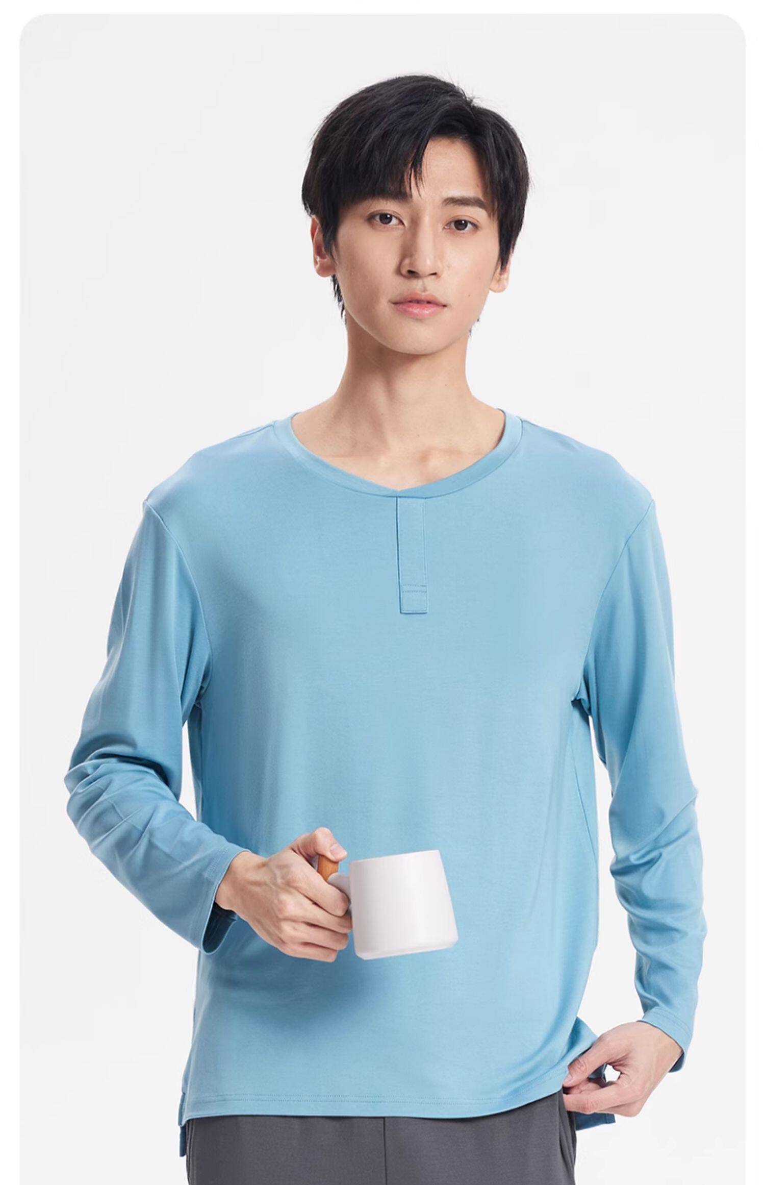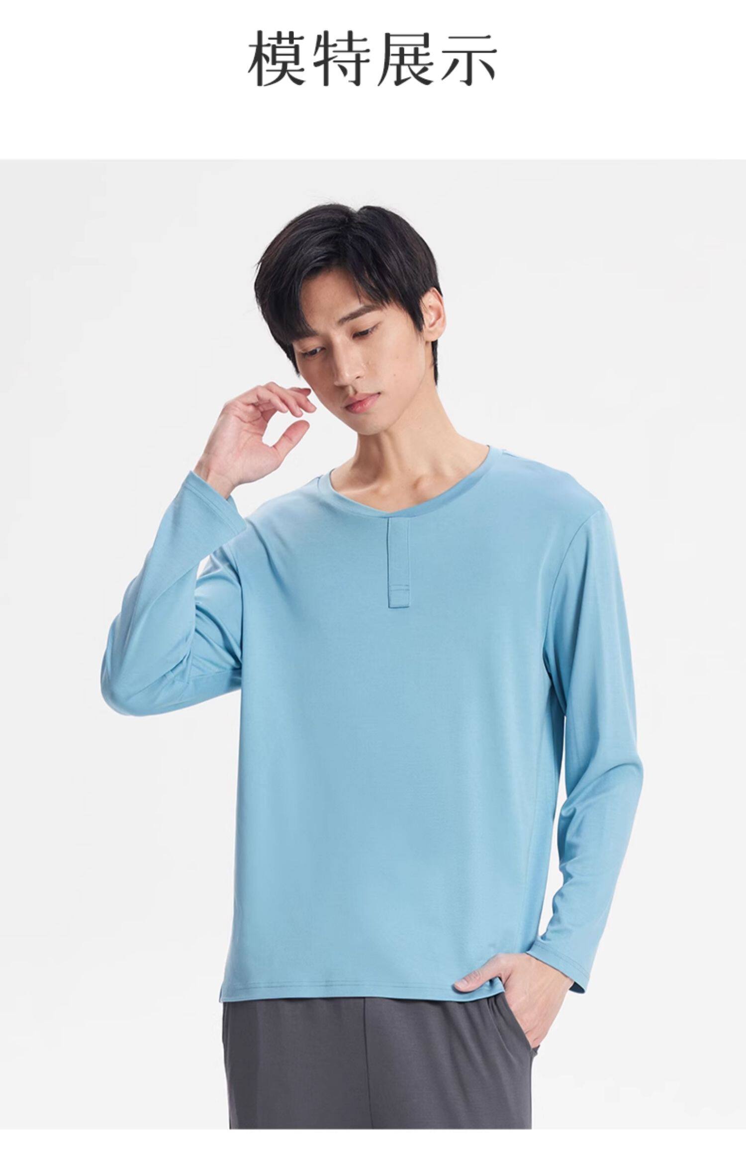 Мужская осенняя пижама, лонгслив для отдыха, футболка, демисезонное термобелье, оверсайз