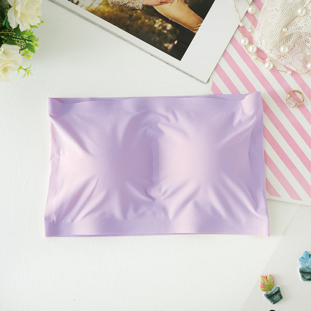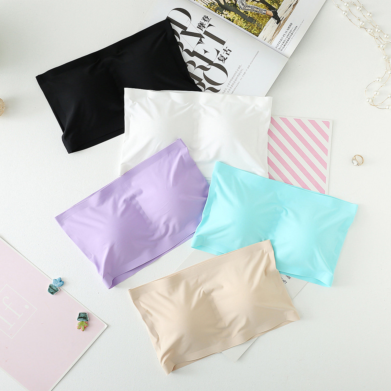 Шелковый нескользящий топ без лямок, бюстгальтер-топ, топ с чашечками, защитное белье, бюстгалтер, 2 шт