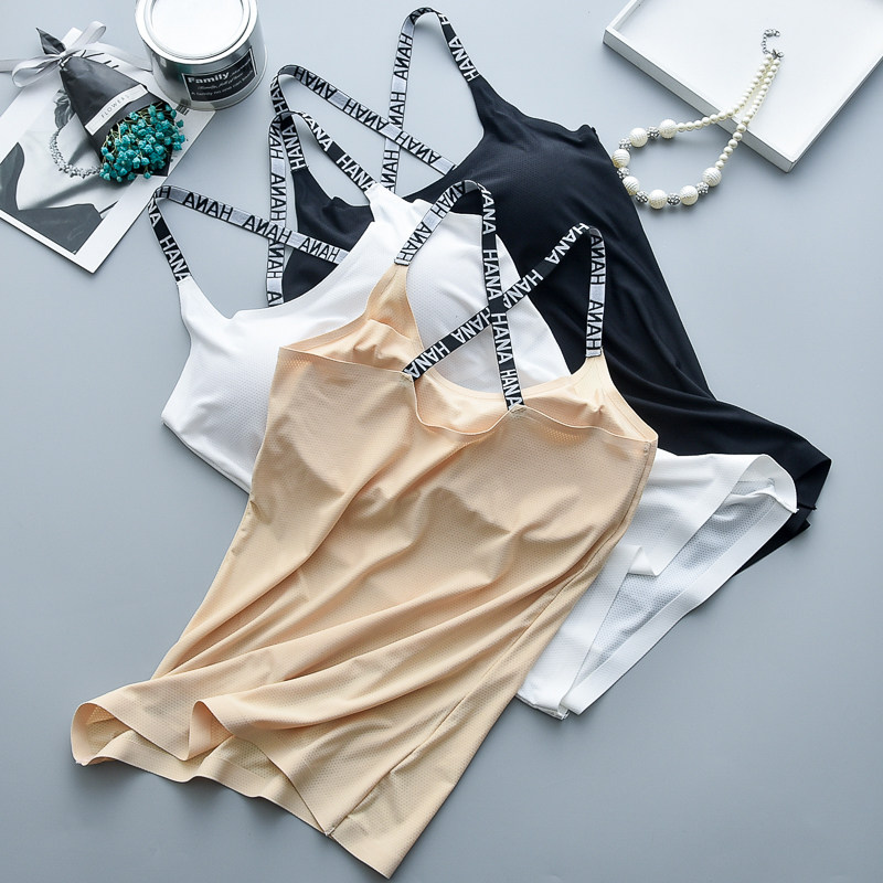 Шелковый длинный топ с чашечками с буквами, защитное белье, нижнее белье, тонкий бюстгальтер-топ