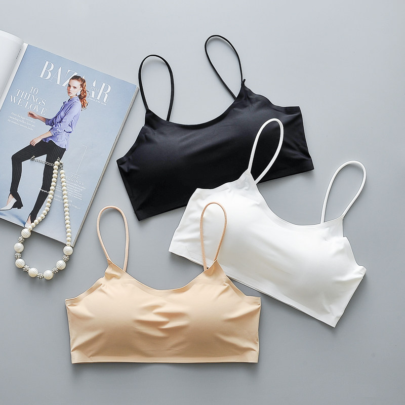 Летний шелковый бюстгальтер-топ, топ без лямок, защитное белье, нижнее белье, топ с чашечками, короткая майка топ, для маленькой груди