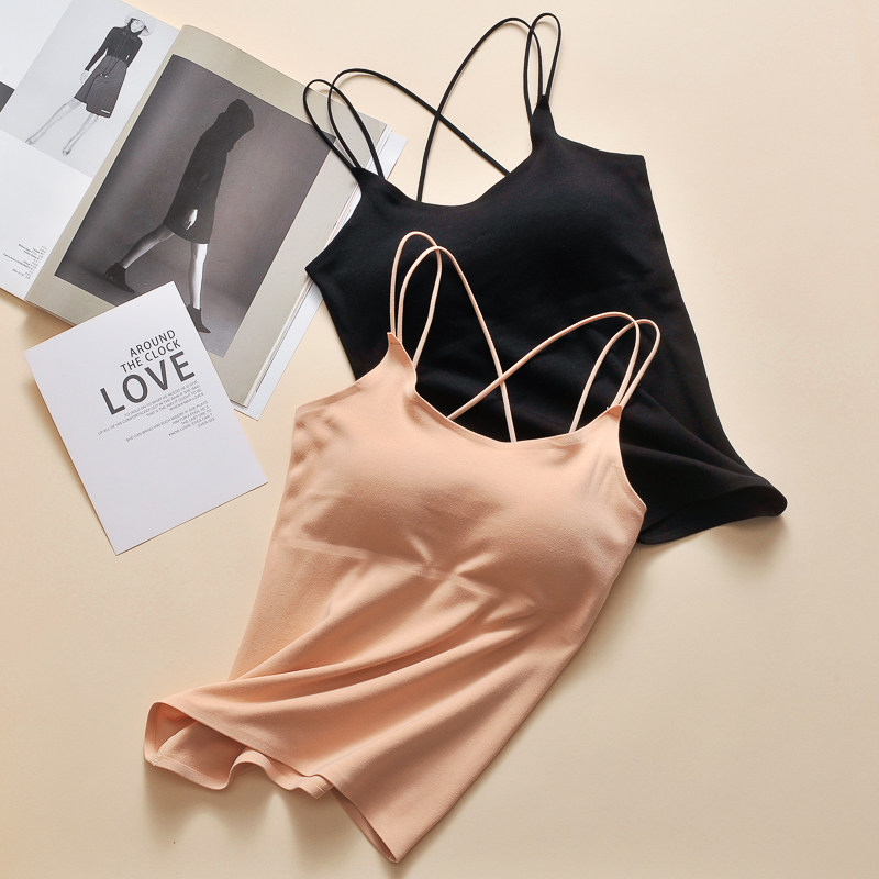 Удерживающее тепло длинное нижнее белье, бархатная демисезонная базовая приятная телу майка топ, топ с чашечками, топ без лямок