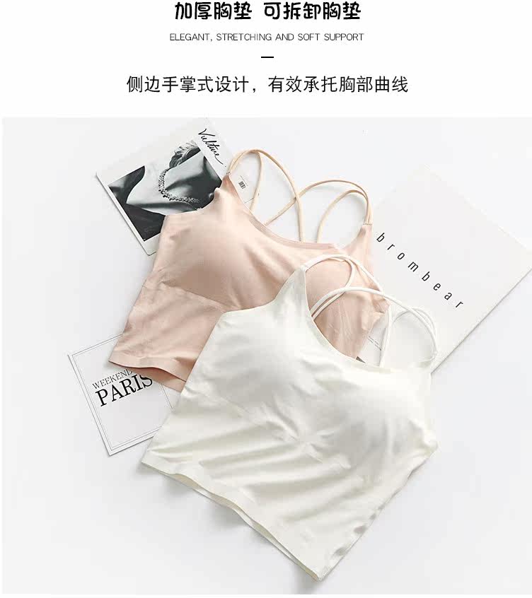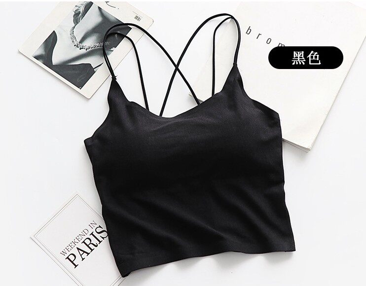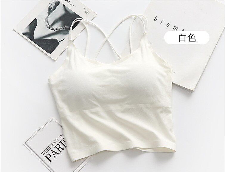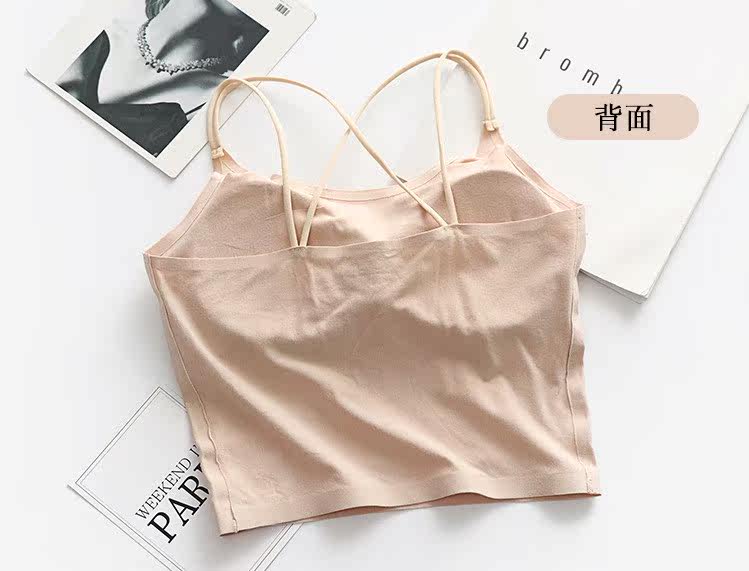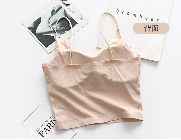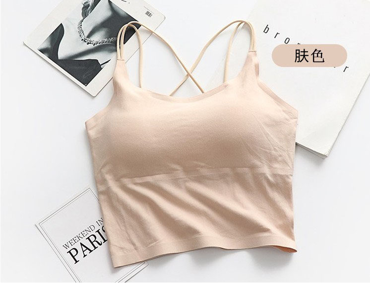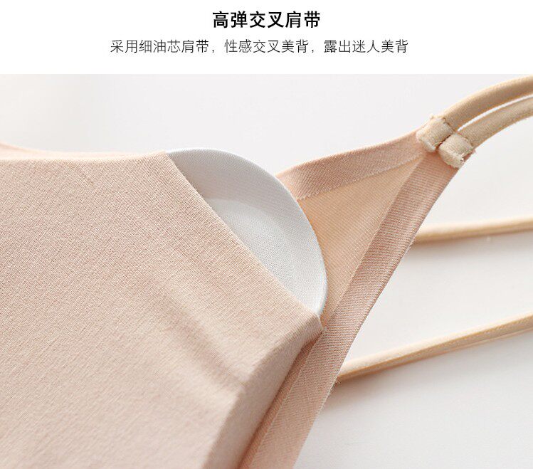 Летний длинный хлопковый бюстгальтер-топ, майка пуш-ап, красивая спина, тонкий ремешок, эффект подтяжки, средней длины, телесного цвета