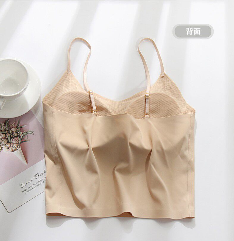 Шелковое защитное белье, топ с чашечками, бюстгальтер-топ, утяжка для груди, нижнее белье, длина миди, тонкий ремешок, телесного цвета