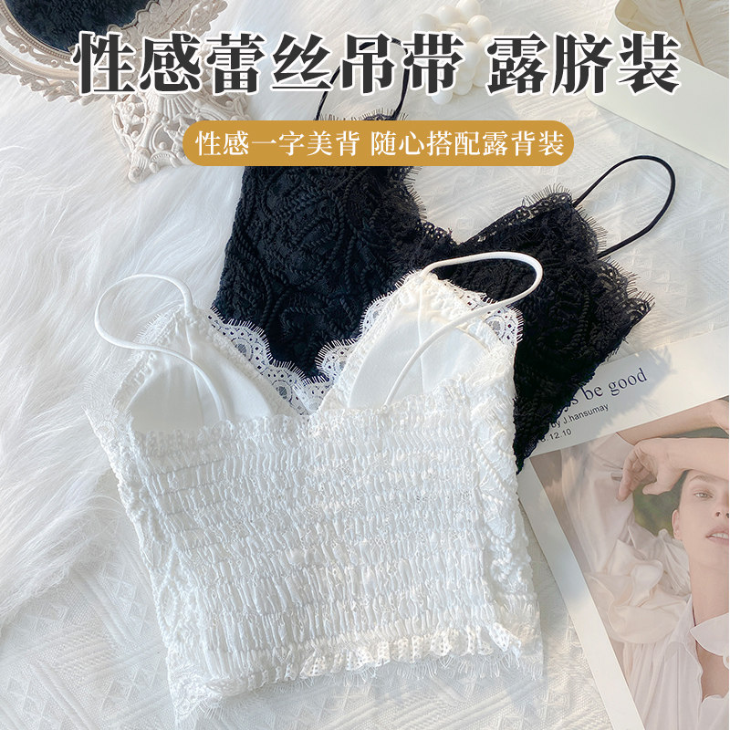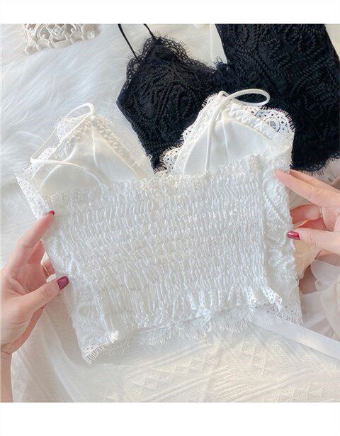 Майка топ, кружевной шелковый белый топ с чашечками, популярно в интернете, красивая спина, 2020