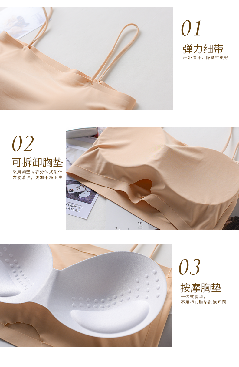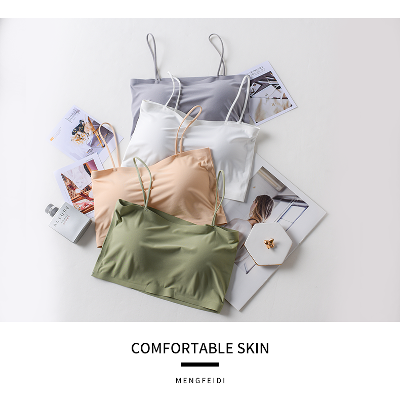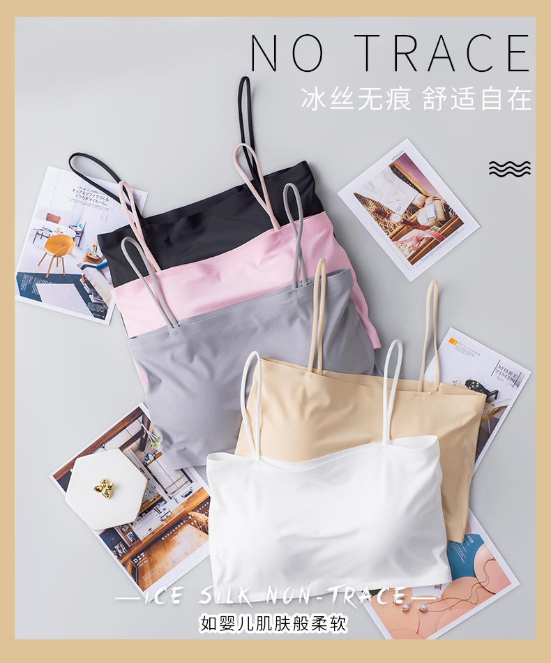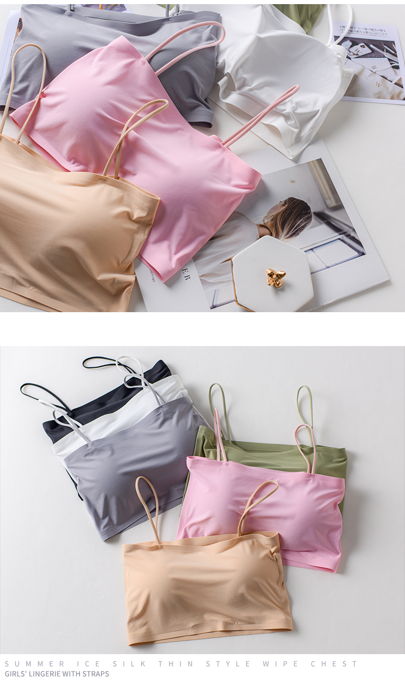 Шелковый топ без лямок, нижнее белье, топ с чашечками, тонкий бюстгалтер, летнее защитное белье, красивая спина