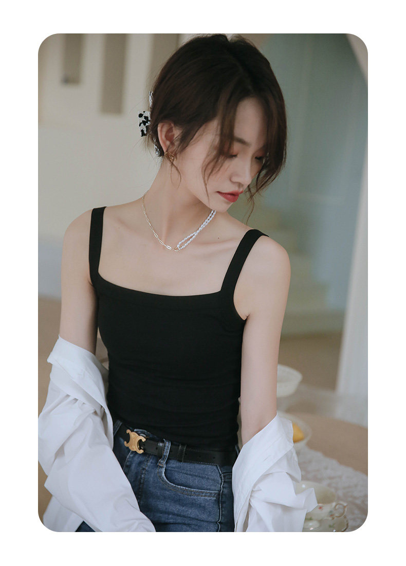 Черная майка топ, тонкое летнее нижнее белье, бюстгалтер, защитное белье, квадратный вырез, красивая спина, с лямками