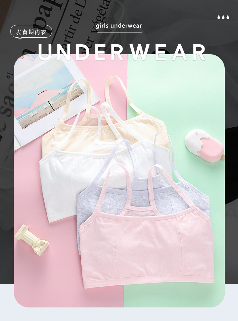 Хлопковое нижнее белье для школьников, стеганый противоударный бюстгальтер без косточек, майка, для средней школы