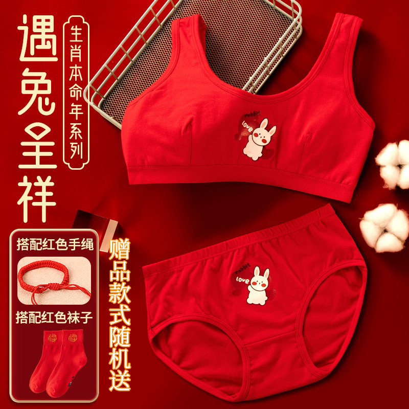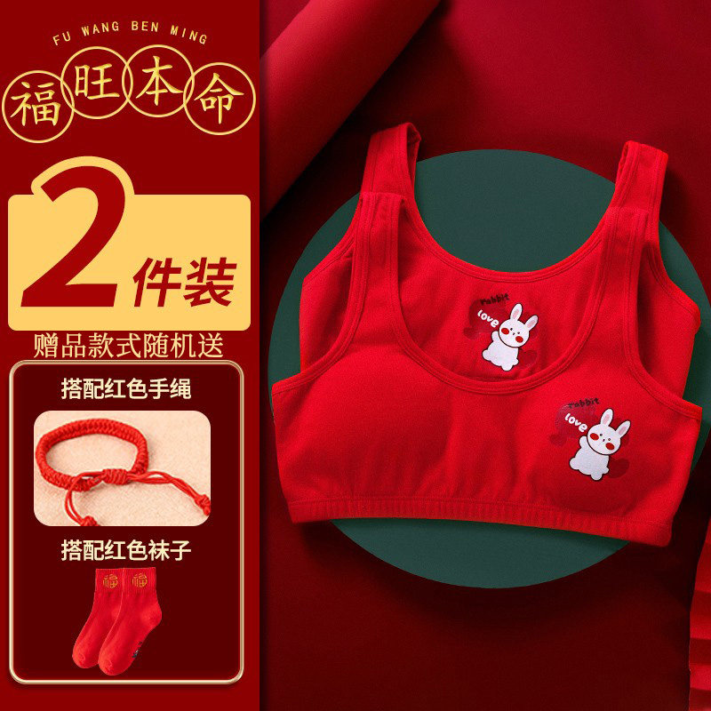 Красный оберег на день рождения, нижнее белье, хлопковый комплект, жилет для школьников, подростковый бюстгальтер, подходит для подростков, год кролика, 12 лет