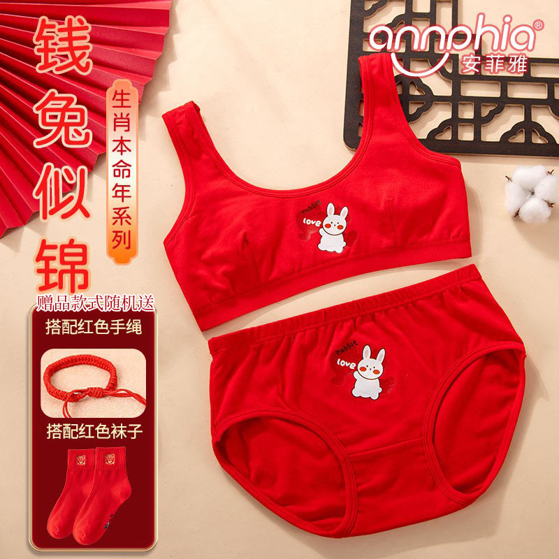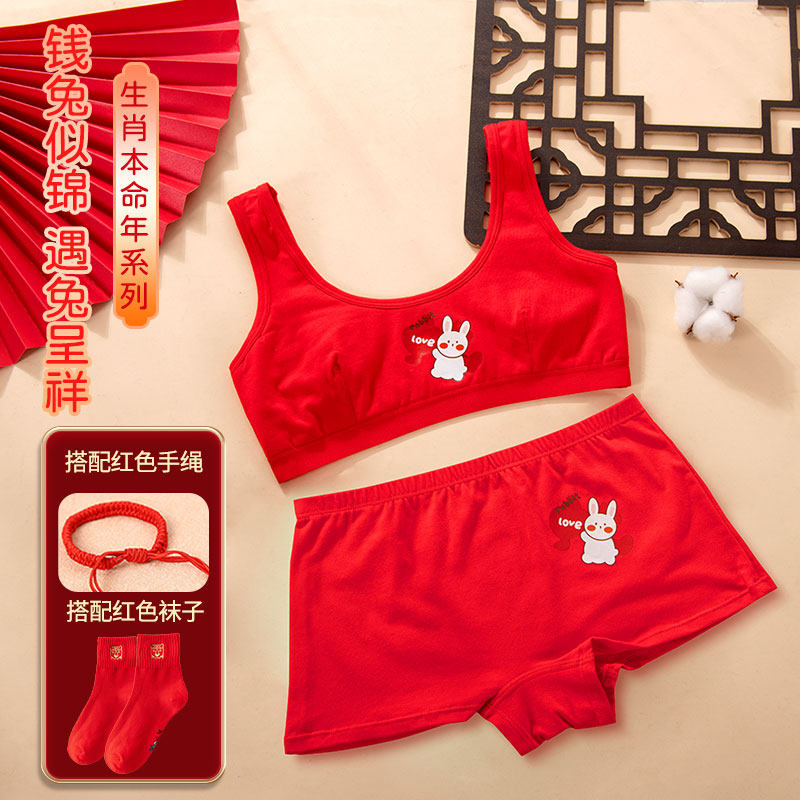Оберег на день рождения, красное нижнее белье, хлопковый комплект для школьников, жилет, подростковый бюстгальтер, 12 лет, год кролика
