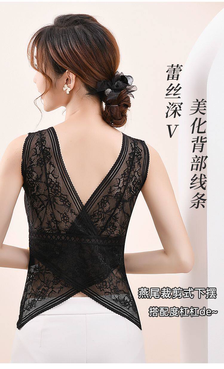 Кружевной жилет, тонкий модный топ с чашечками, длинное нижнее белье, бюстгалтер, красивая спина, французский стиль