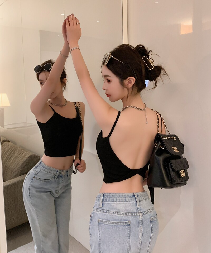 Сексуальная майка топ, топ с чашечками, базовое нижнее белье, по фигуре, с открытой спиной