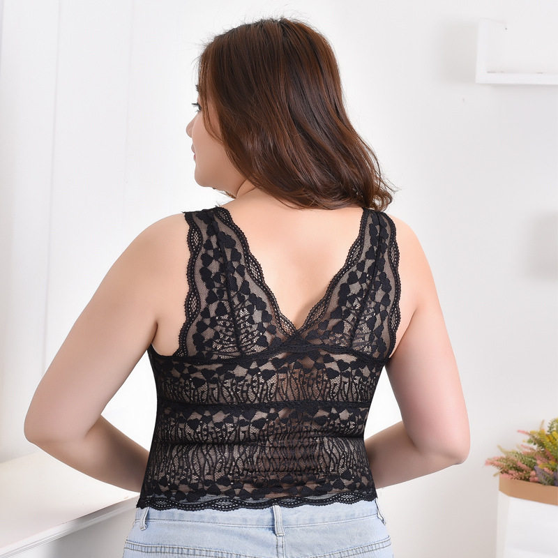Длинная кружевная базовая майка топ, майка пуш-ап, топ с чашечками, большой размер, средней длины, красивая спина