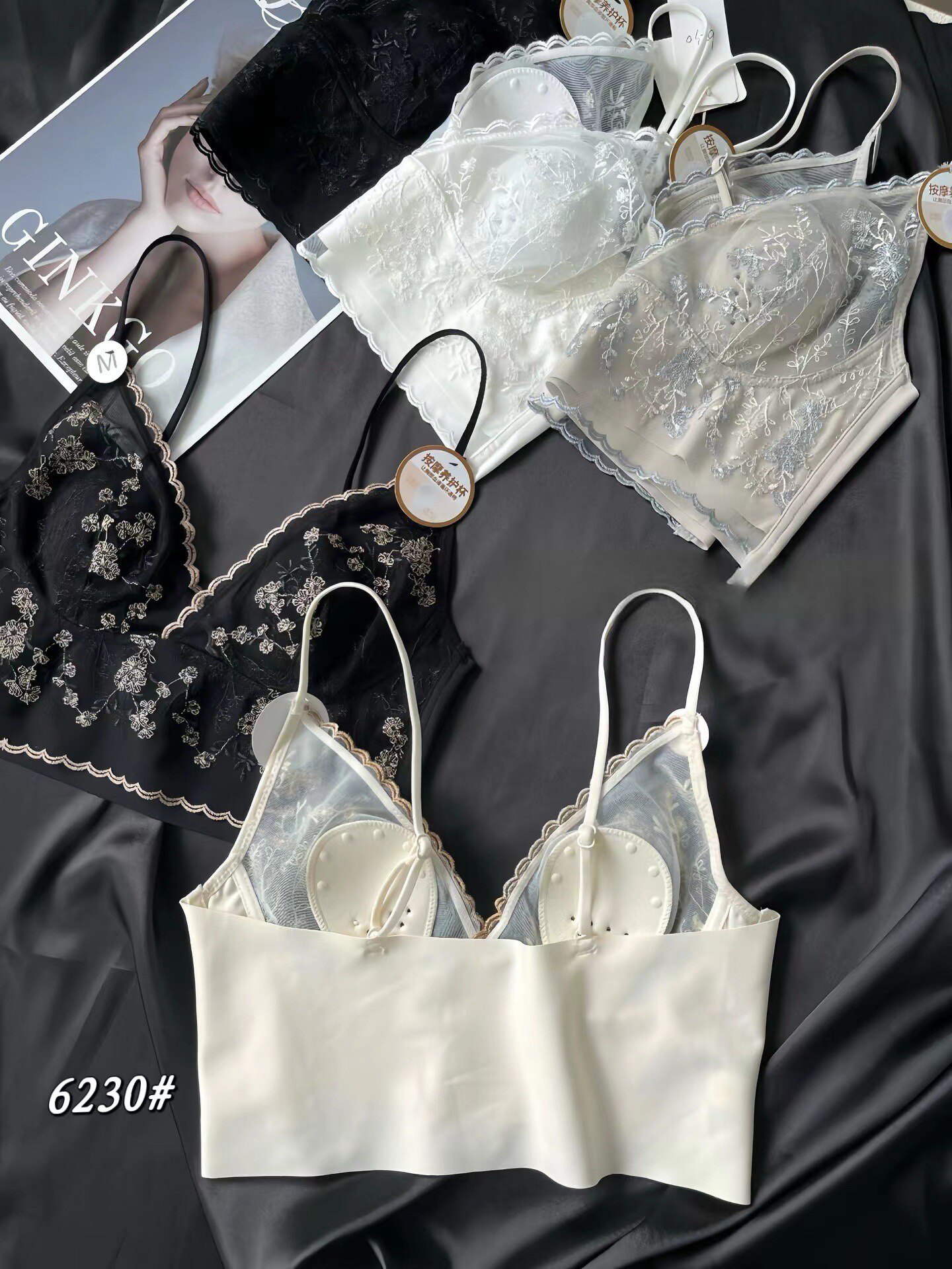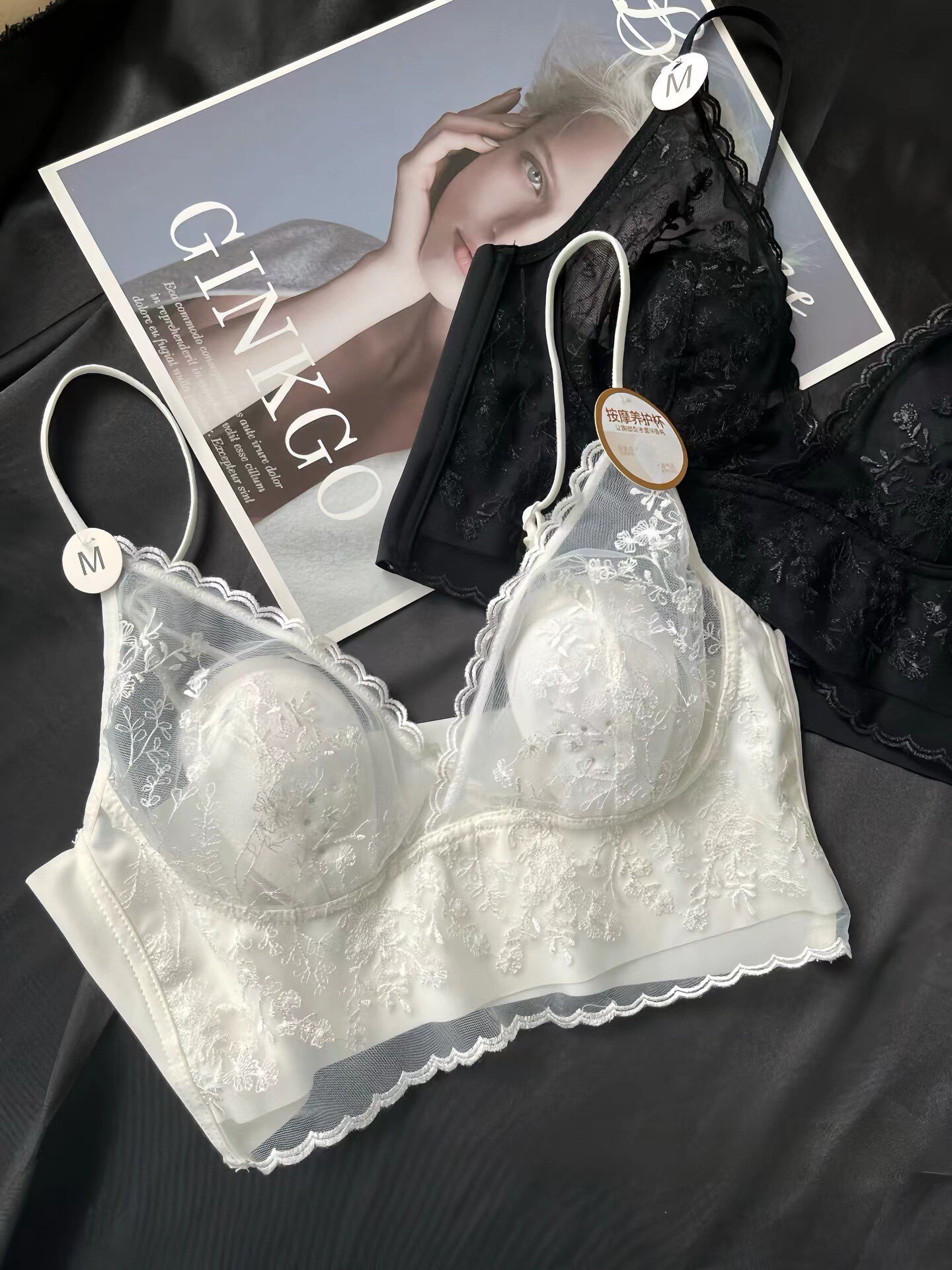 Кружевной быстросохнущий бокал, нижнее белье, изысканный стиль, с вышивкой, V-образный вырез