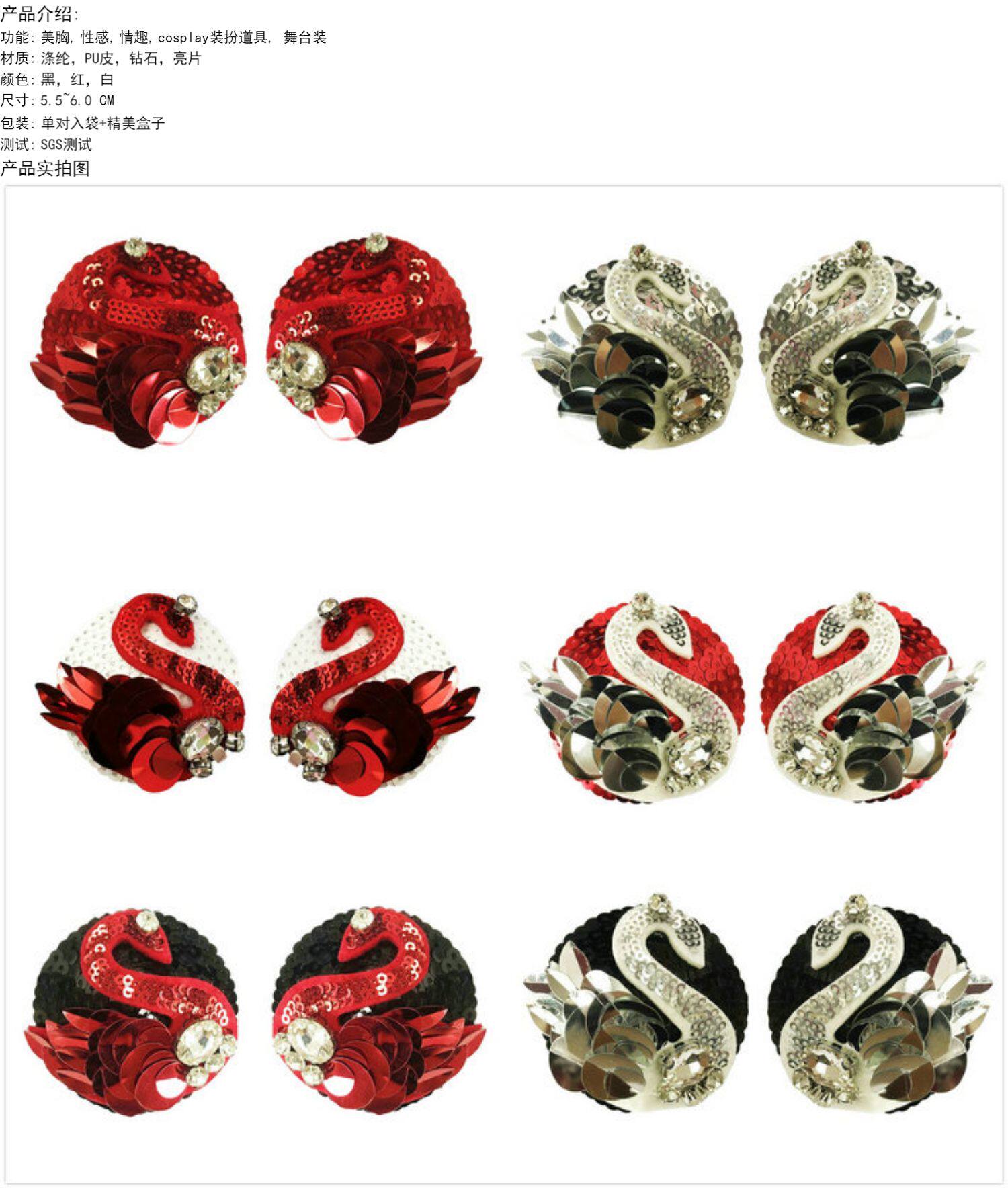 Бриллиантовые наклейки на соски на день Святого Валентина, красный серебряный многоразовый лебедь