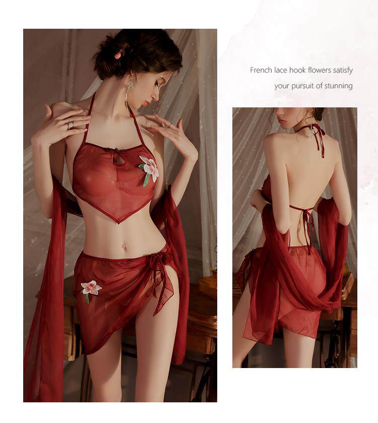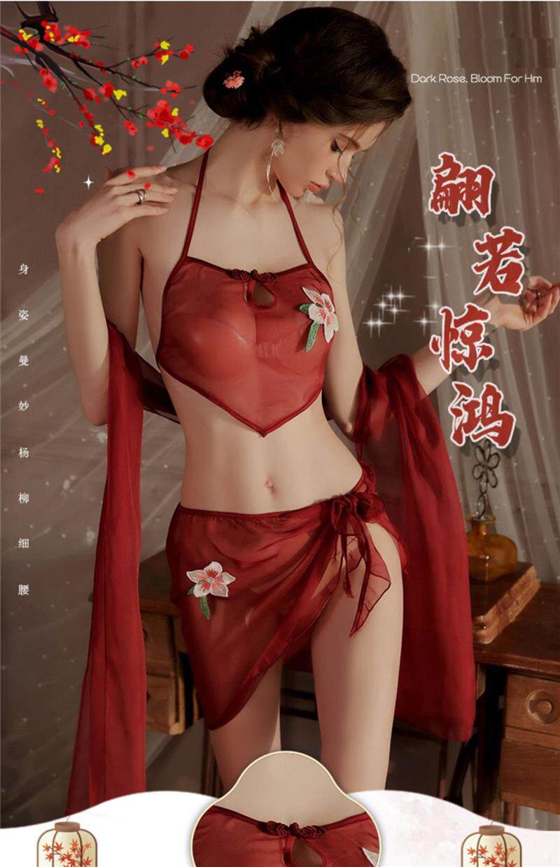 Сексуальная пижама, накидка, кружевное дудоу, ханьфу, комплект, китайский стиль