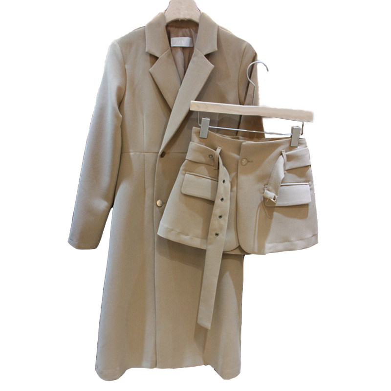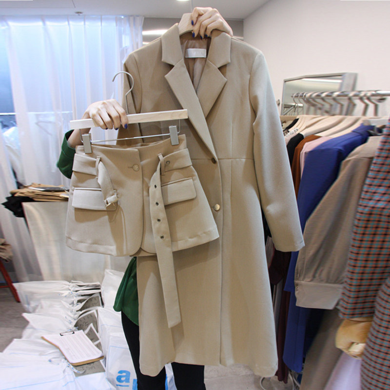 Осенний пиджак классического кроя, плащ, комплект, популярно в интернете, 2020, в корейском стиле, средней длины