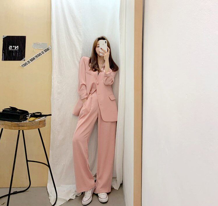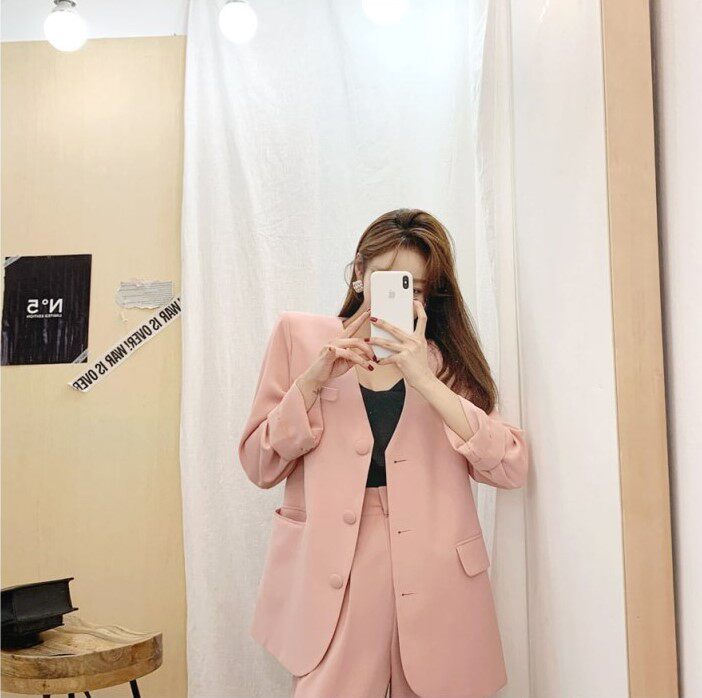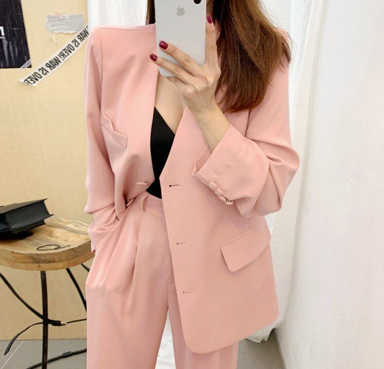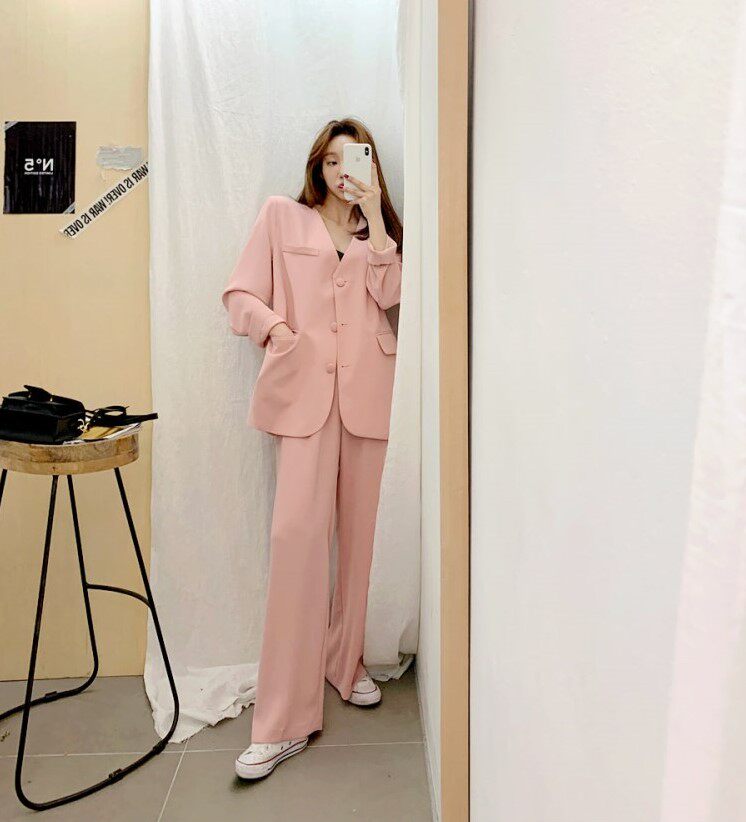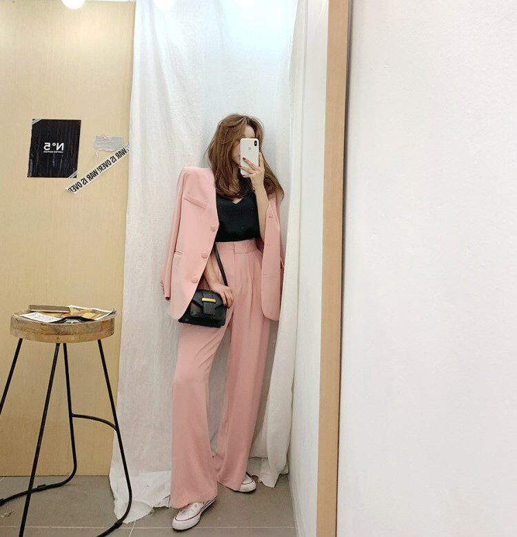 Классический костюм, розовые румяна для отдыха, пиджак классического кроя, комплект, 2020, в корейском стиле, популярно в интернете