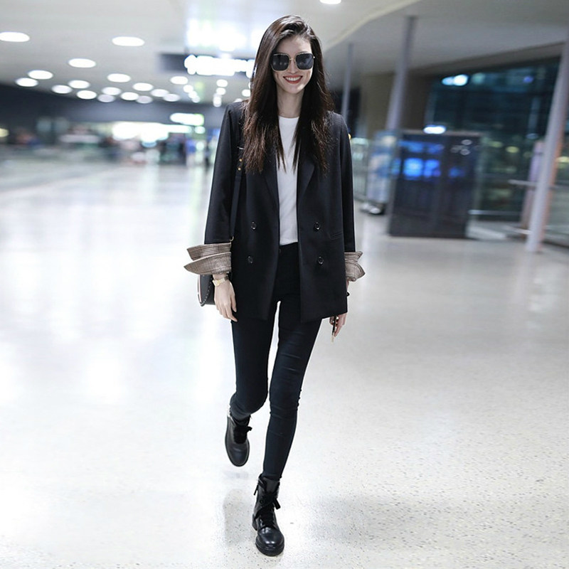 Демисезонный пиджак классического кроя, короткие джинсы с начесом, коллекция 2021, в корейском стиле, в британском стиле