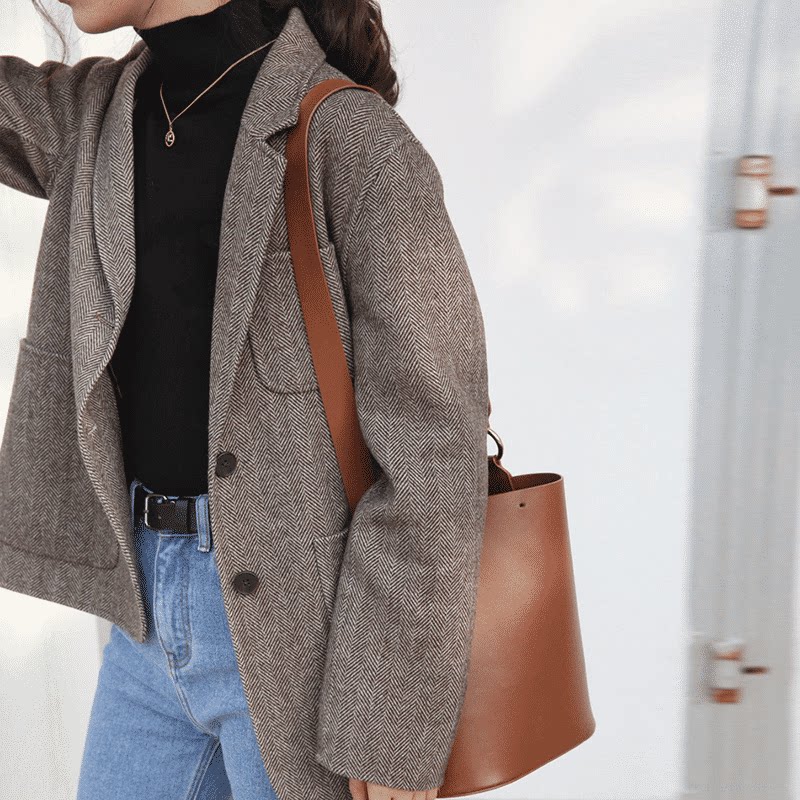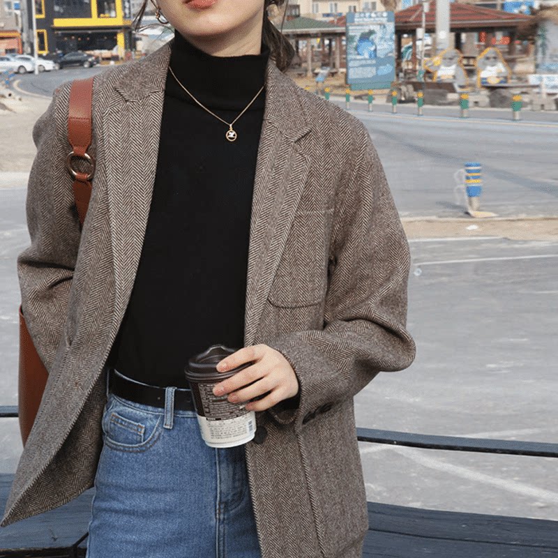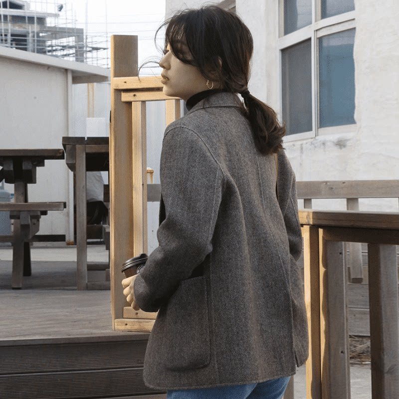 Демисезонный шерстяной пиджак классического кроя для отдыха, в корейском стиле, подходит для подростков