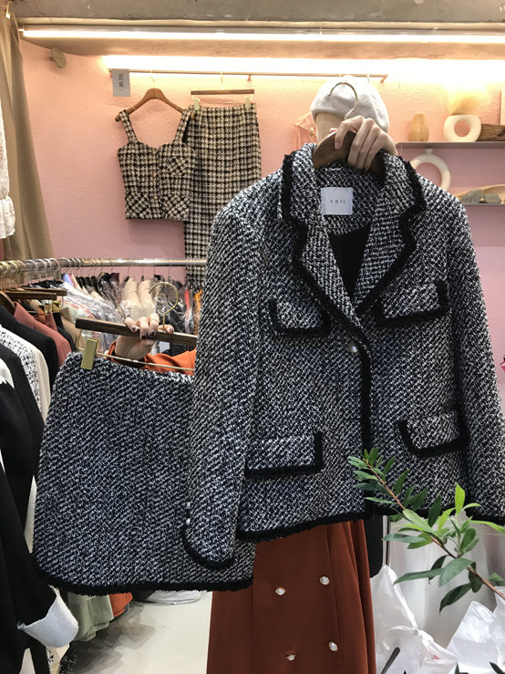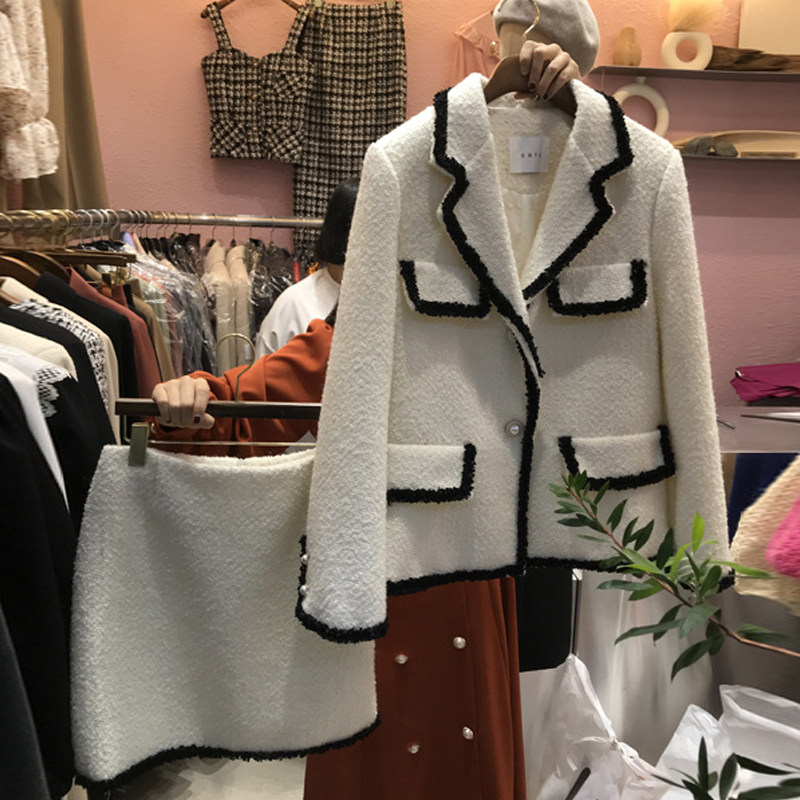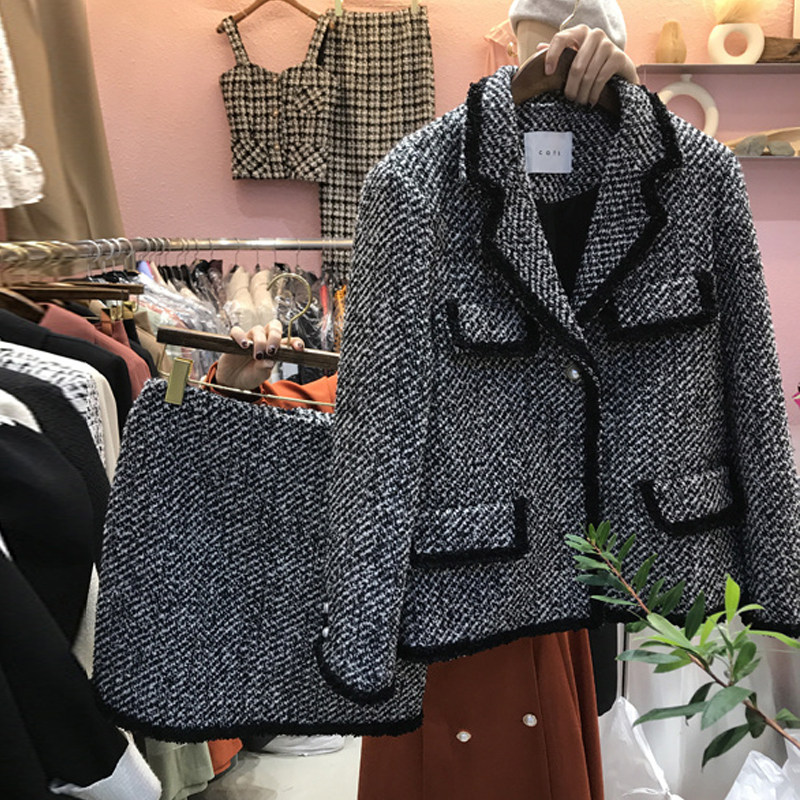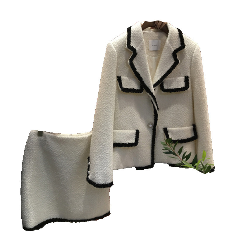 Пиджак классического кроя, осенний комплект, небольшая юбка, коллекция 2021, в корейском стиле, в стиле Шанель