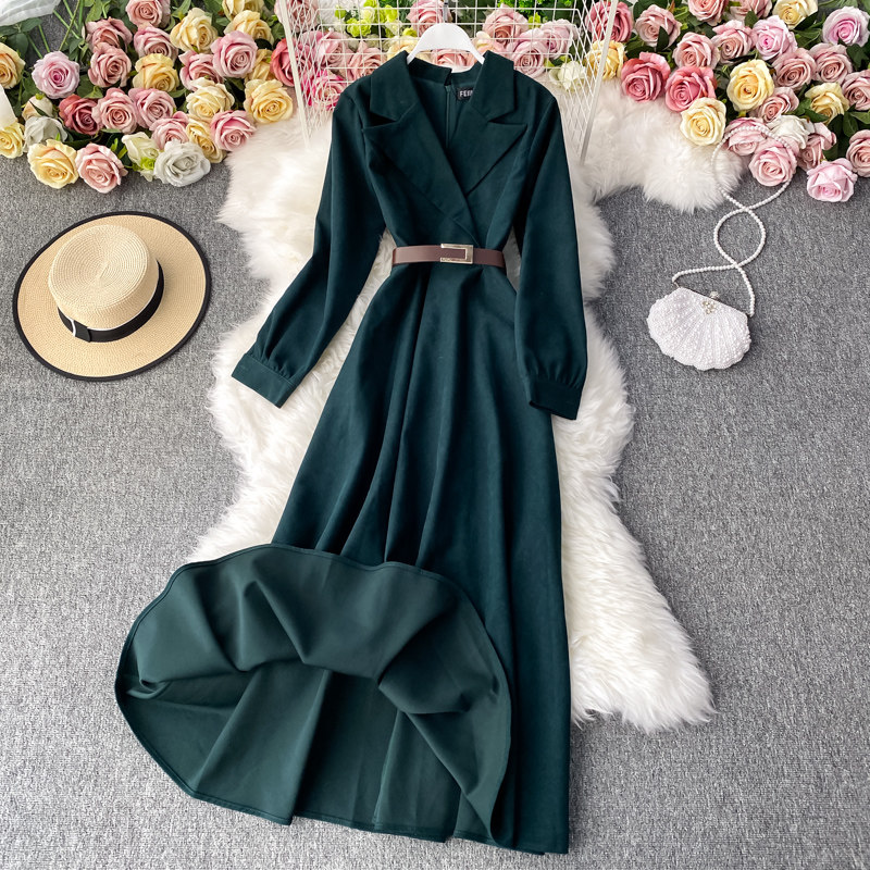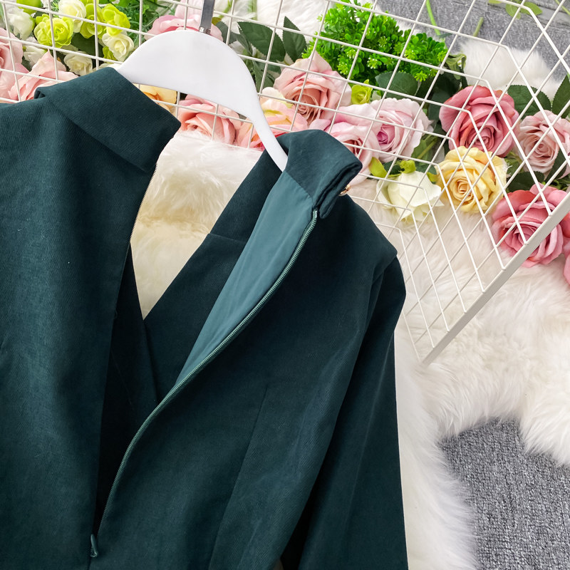 Ретро вельветовый костюм, демисезонное платье, модный приталенный корсет, длинная юбка, длина макси