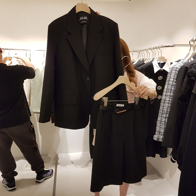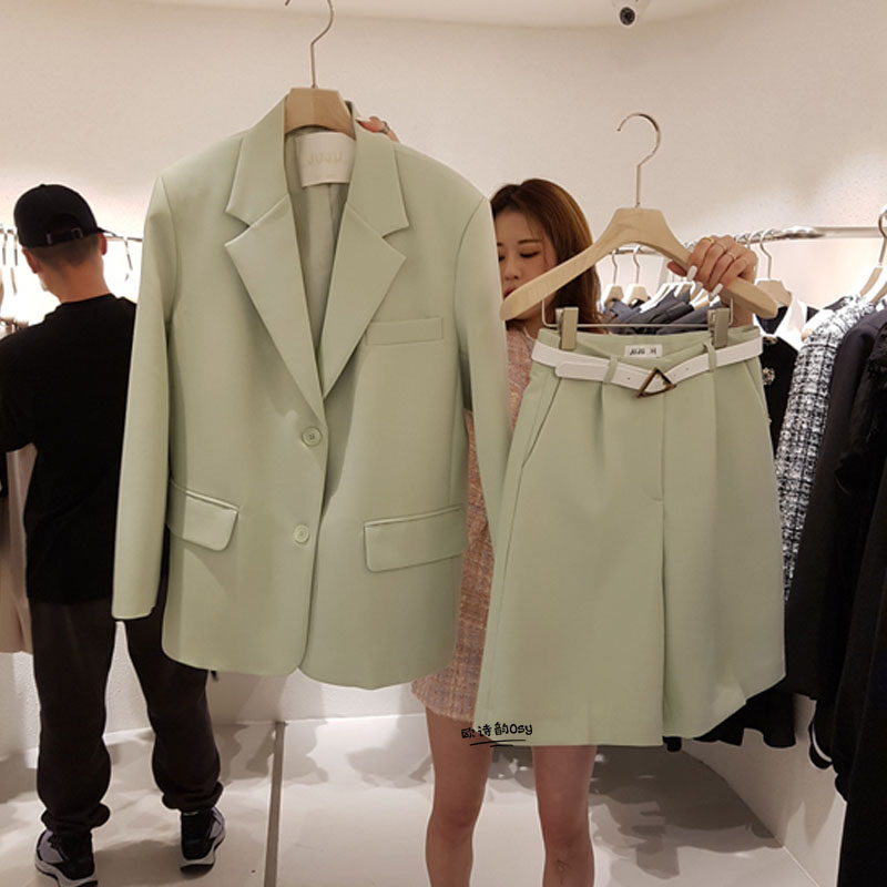 Классический костюм, комплект, универсальная короткая куртка, популярно в интернете, коллекция 2021, в корейском стиле, в западном стиле