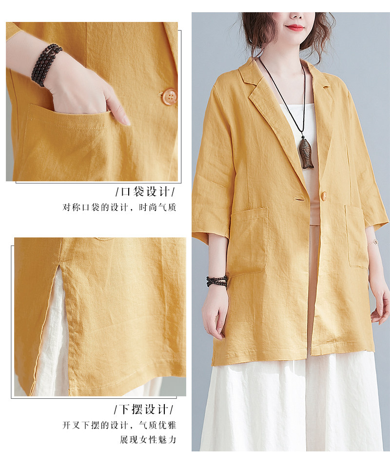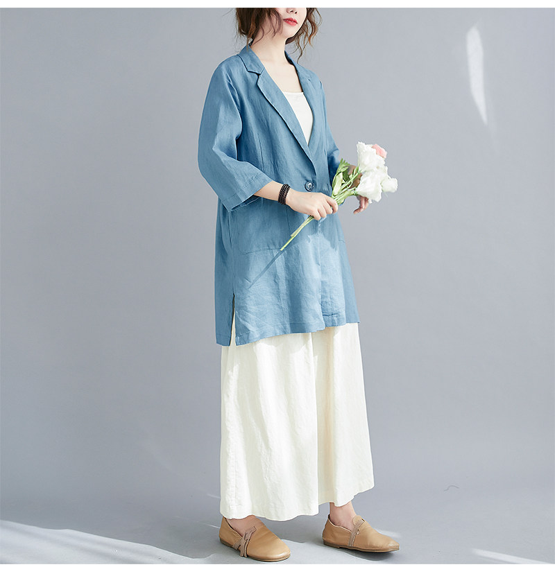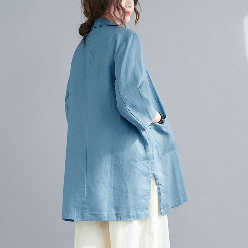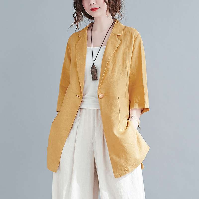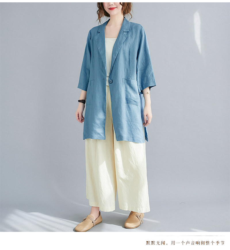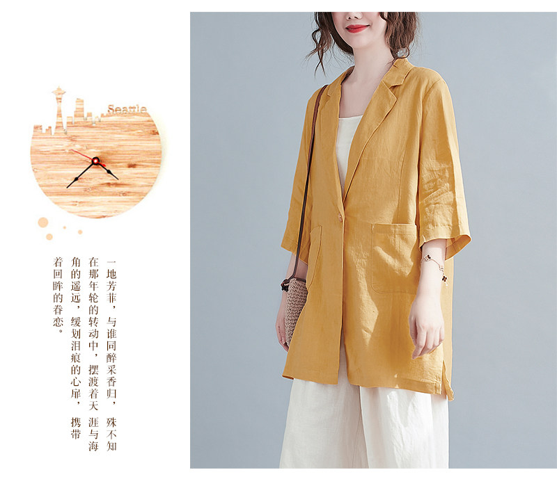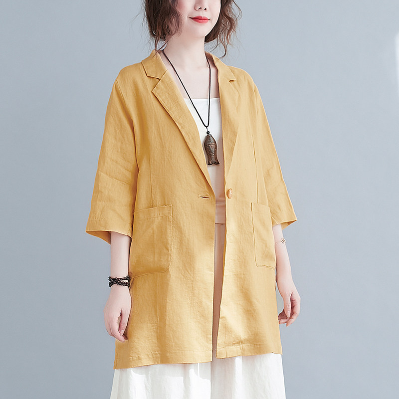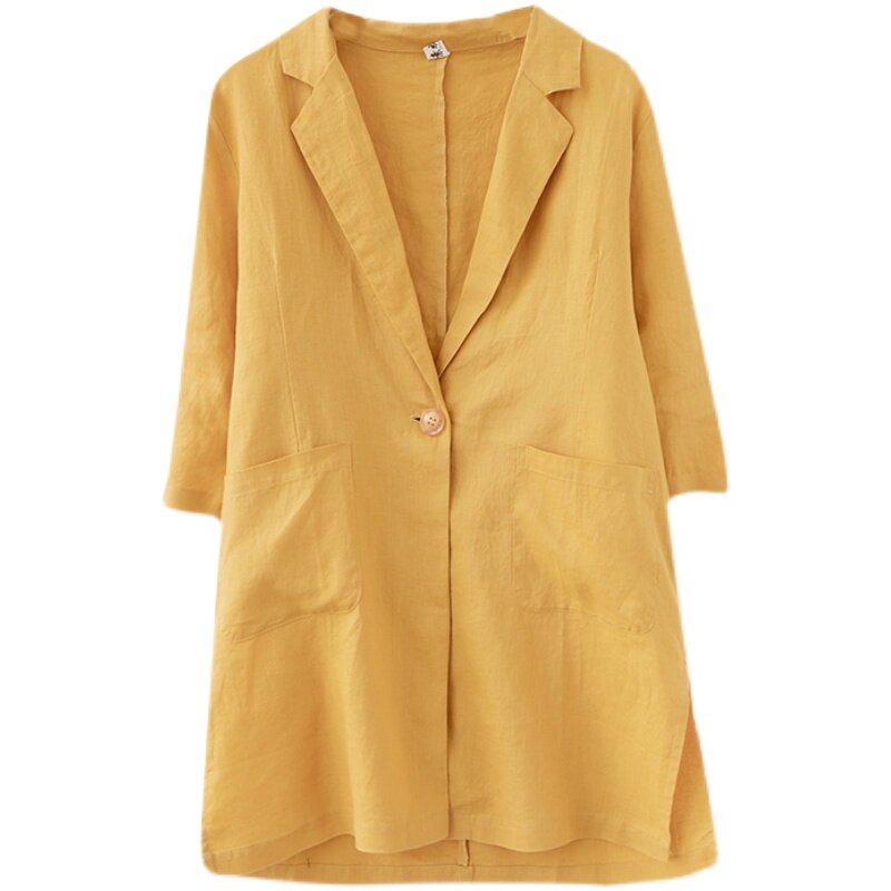 Тонкий летний длинный пиджак классического кроя, городской стиль, средней длины, из хлопка и льна